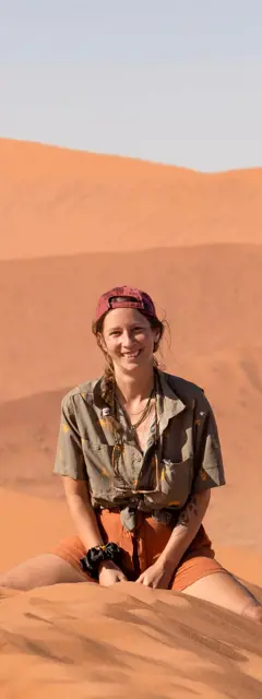 Wir erwachen mit Blick auf die Wüste, wo Tiere frei leben. Am Morgen spazieren wir mit einem Guide und entdecken die einzigartige Geologie und Ökologie. Tagsüber entspannen wir am Pool oder erkunden Felsformationen. Nachmittags geht es im Safari-Fahrzeug in die Dünen. Mit Sundowner-Drinks geniessen wir den Sonnenuntergang, bevor wir nachtaktive Tiere entdecken.