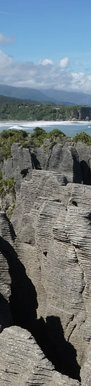 Auf dem Weg zur Westküste durchqueren wir die spektakuläre Buller-Schlucht. Wir erleben einen eindrucksvollen Wechsel der Pflanzenwelt und erreichen subtropischen Tieflandregenwald. Zwischen Westport und Greymouth erwartet uns eine wildromantische Landschaft. Parallel zur Küste verläuft der bis 1'500m hohe Faltengebirgsgürtel des Paparoa Nationalparks. Wir besichtigen die berühmten «Pfannkuchen-Felsen», Kalksteinfelsen, deren weichere Zwischenschichten von der tosenden Tasman-See permanent ausgespült werden, so dass die Felsformationen als stapelartige Schichtung erscheinen. Das heutige Hotel liegt in Strandnähe.