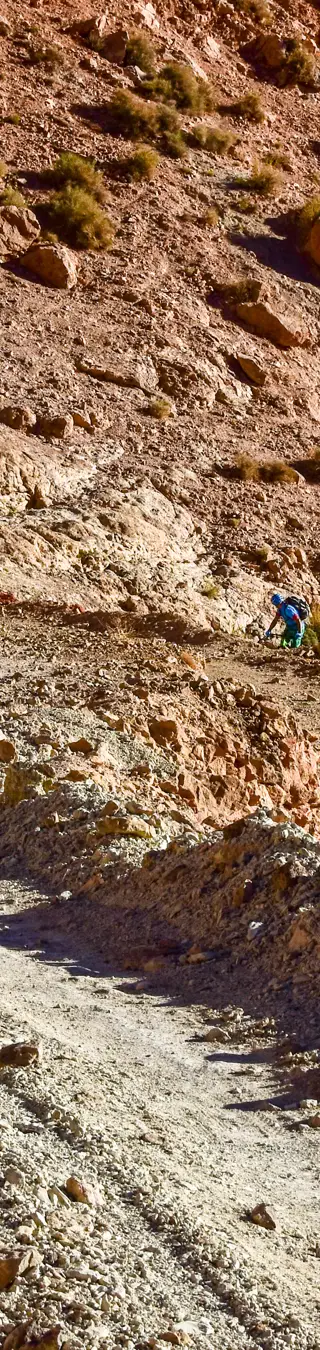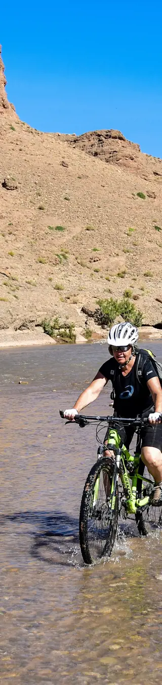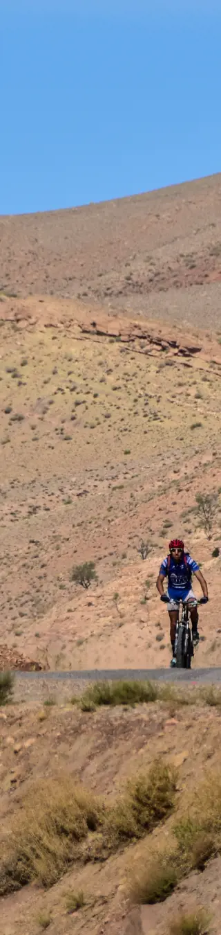 Mit unseren 4x4 Autos erreichen wir das Hochplateau von Ait Zaghar. Unsere Bikestrecke führt an zahlreichen Höhlen der Berber-Nomaden vorbei. Wir treffen auf Schaf- und Ziegenherden, passieren kleine Dörfer und lassen das gemächliche ländliche Leben der Berber auf uns wirken. Nach einem feinen Picknick durchwandern wir den eindrucksvollen Quati Canyon und besuchen die einzigartige Kasbah in El Hot.