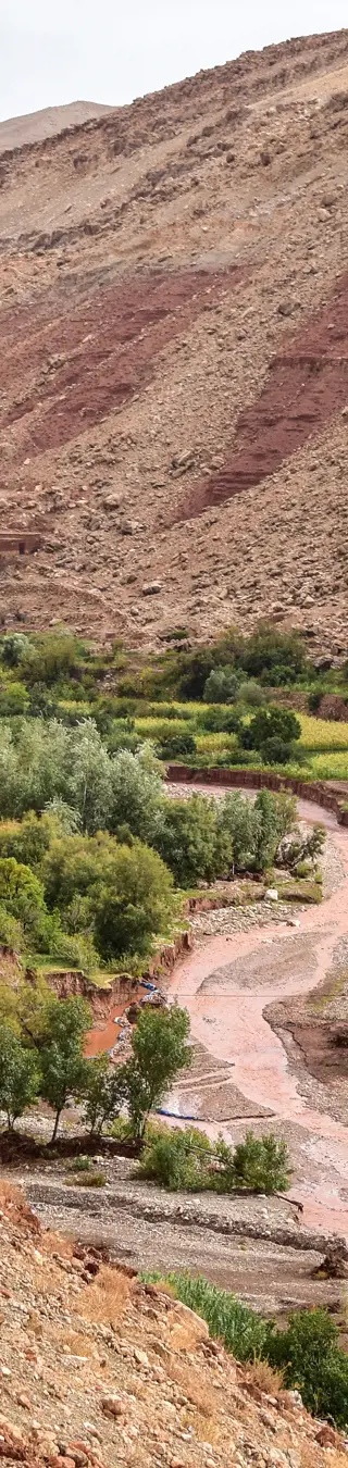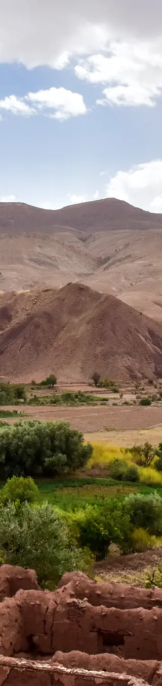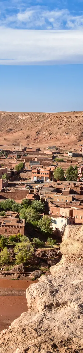 Am Fusse des Hohen Atlas liegt die befestigte Stadt Ait Ben-Haddou. Wir tauchen ein in die wohl besterhaltene, nach traditioneller Architektur erbaute Lehmbausiedlung von Marokko. Sie diente mehrmals als Filmkulisse genauso wie die nahen Filmstudios von Ouarzazate. Ein Transfer bringt uns nach Ghassate. Per Bike folgen wir einer Schottenpiste durch die Steinwüste zu einer idyllischen Oase.
