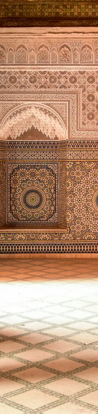 Goldene Ornamente, feinste Zellij-Fliesen und kunstvoll geschnitzte Holzdecken: Das Mausoleum von Moulay Ismail ist ein Fest für die Sinne. Hier zeigt sich die Detailverliebtheit marokkanischer Handwerkskunst – erhaben, prachtvoll, einzigartig.