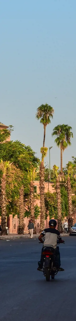 Wir fliegen von Zürich nach Marrakesch. Wenn wir mit einem Morgenflug ankommen, haben wir genügend Zeit den berühmten Jardin Majorelle zu besuchen oder wer will kann auf eigene Faust mit dem Taxi in die Medina (Altstadt) fahren und die Souks (Märkte) besuchen. Gegen Abend nehmen wir unsere Bikes in Empfang und gehen gemeinsam in der Nähe des Hotels Essen.