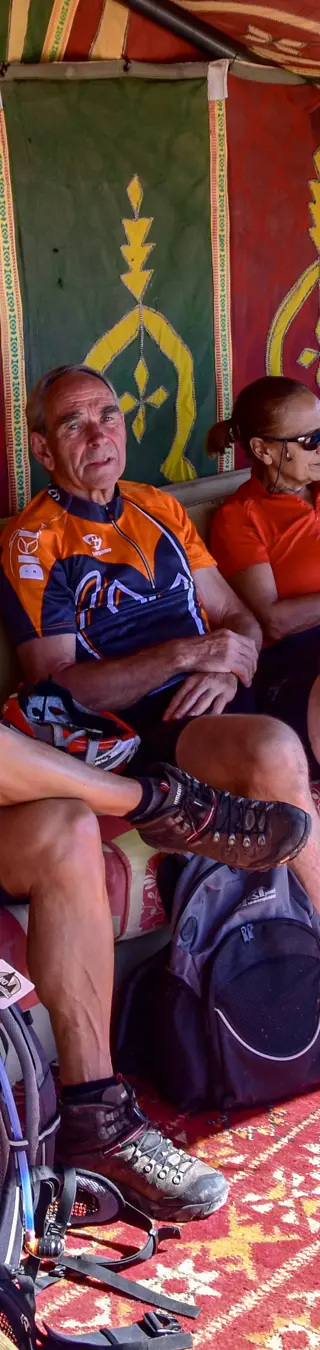 Eine alte, fast vergessene Strasse führt uns über ein eindrückliches Hochplateau und verbindet das Rosen-Tal mit dem farblich kontrastreichen Dades-Tal. Hier leben Berber immer noch in jahrhundertealten Höhlen und bauen auf dem schmalen grünen Streifen Feigen, Mandeln und Granatäpfel an. Wir geniessen die verkehrsfreie Fahrt und trinken in einer der bewohnten Höhlen einen frischen heissen Berbertee. Am Nachmittag radeln wir talauswärts dem Dadès-Fluss entlang. Die schroffe Schlucht zwischen dem Hohen Atlas und der Saghro-Gebirgskette beeindruckt mit ihrer eigenen wilden Landschaft.