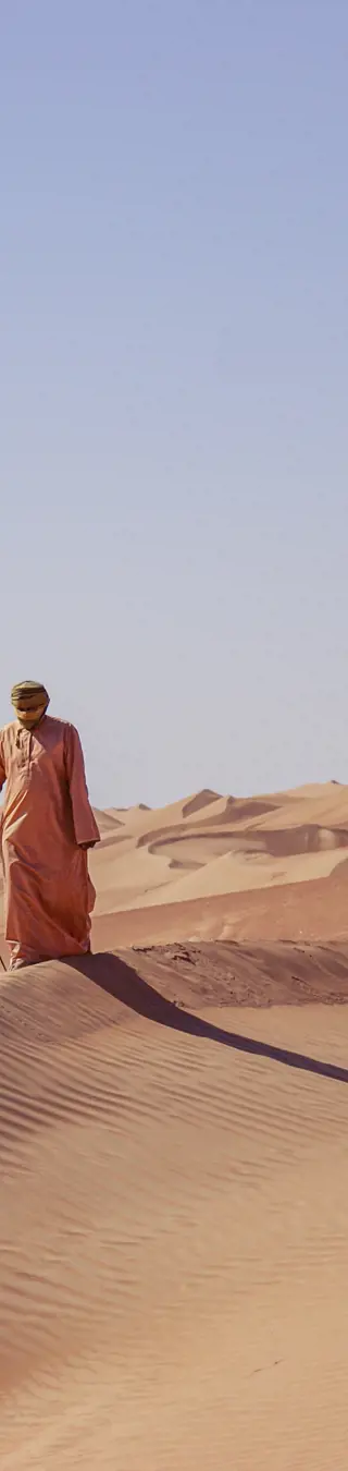 Eine besondere Reise mit Expeditionscharakter: Folge auf dieser Privatreise der Omanischen Küste von Muscat bis Salalah in einem komfortablen Geländefahrzeug mit Chauffeur. Du wirst einsame, kilometerlange Sandstrände sehen, Klippen, die sich dramatisch ins türkisblaue Meer stürzen, und schläfst im Zelt unter einem unvergesslichen Sternenhimmel. Die einmalige Dünenlandschaft der Wahiba-Wüste wird dich begeistern.