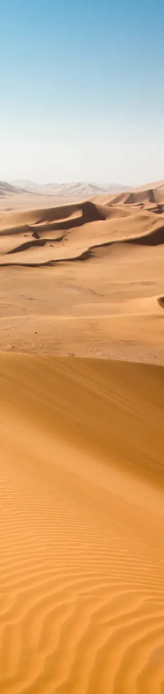 In der Rub Al Khali Wüste befindest du dich in der grössten Sandwüste der Erde. Dieses Sandmeer ist sogar grösser als die Sahara. Endlose Dünenlandschaften liegen vor dir, keine Menschenseele weit und breit. Tatsächlich ist diese Wüste sehr lebensfeindlich, sogar die Beduinen leben nur an ihrem Rand. Den Übernamen «leeres Viertel» trägt die Wüste nicht umsonst. Lass dich von dieser Weite und Leere verzaubern.