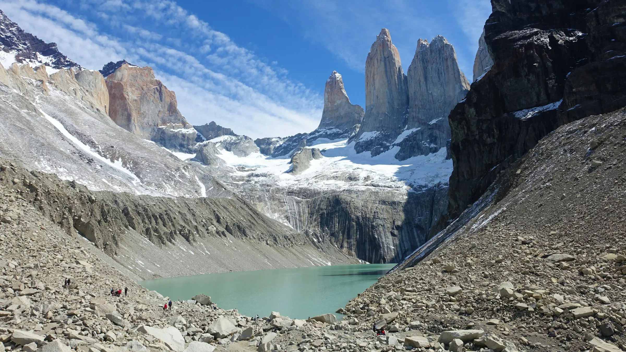 Mit dem Tagesrucksack geht die Wanderung weiter, eine Stunde durch einen urwüchsigen Lenga-Südbuchenwald bis zum Fusse einer Gletschermoräne. Von dort führt der Weg in zirka 45 Minuten relativ steil über die Moräne hinauf zum Aussichtspunkt am Fusse der berühmten Felstürme «Mirador Base Torres». Eine beeindruckende Aussicht auf die drei «Torres», Torre Sur (2.850 m), Torre Central (2.800 m) und Torre Norte (2.600 m) sowie den Nachbargipfel Nido del Cóndor und den Torres-Gletscher belohnen für den anstrengenden Aufstieg. Der Rückweg erfolgt über den selben Wanderweg.