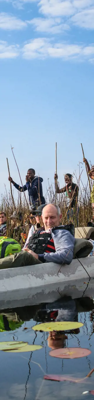 Heute erkunden wir das Delta in Mokoros (traditionelle Einbäume), paddeln durch Papyrus und Schilf zu Lagunen und Inseln, halten Ausschau nach Wildtieren. Unterwegs picknicken wir und unternehmen eine Buschwanderung. Am späten Nachmittag kehren wir zur Lodge zurück, um den Sonnenuntergang über der Lagune zu beobachten.