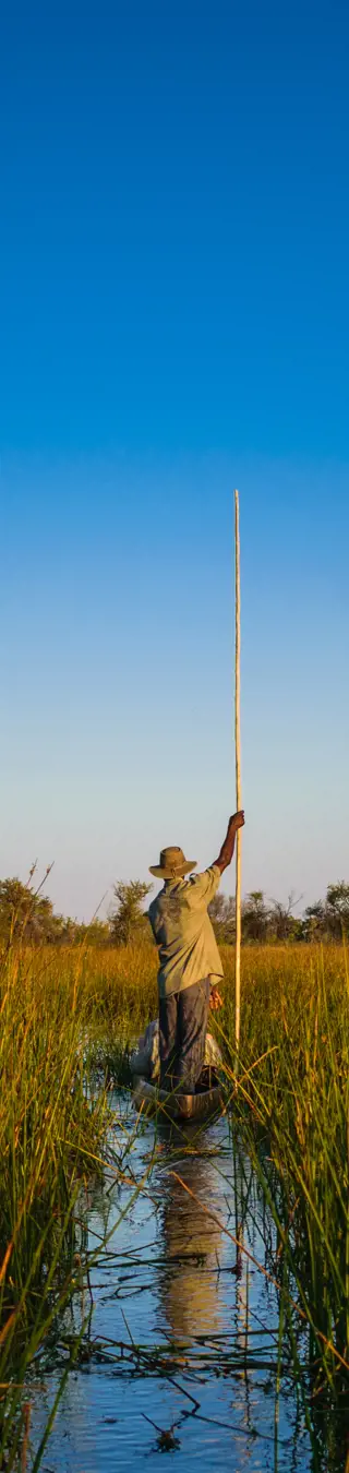 Fahre im Mokoro im Okavango Delta