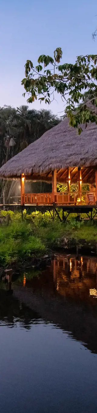 Die 26 Cabañas sind alle mit Warmwasserdusche, Deckenventilator und Moskitonetz ausgestattet. In der Hängematte auf der eigenen Terrasse lässt du den Tag nach spannenden Ausflügen ausklingen und lauschst den Stimmen des Urwalds.