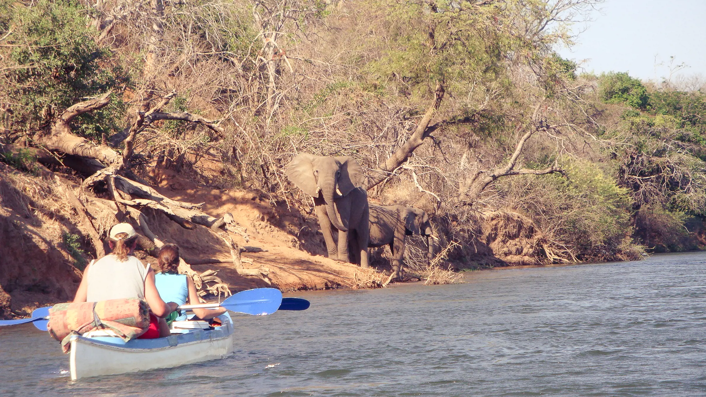 Du paddelst auf dem Sambesi wie durch eine andere Welt. Du gleitest durch die Stille der Natur, nur gebrochen vom Zirpen, Zischen und ab und zu Brüllen der Tiere um dich herum. Am Ufer kannst du Elefanten, Nilpferde, Büffel und andere Wildtiere ausmachen. Du gleitest mit deinem Boot direkt durch ihren Lebensraum. Menschenleere Inseln mitten auf dem Fluss ziehen an dir vorbei.