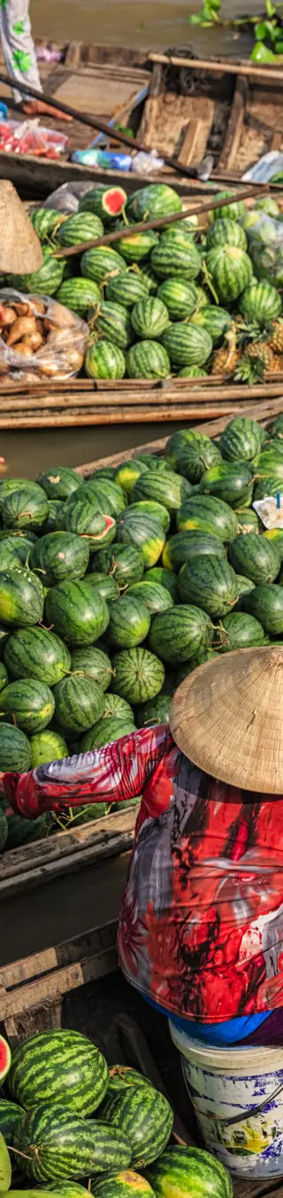 An diesem Morgen unternehmen wir einen Tagesausflug, um das Mekong-Delta zu erkunden. Wir fahren mit einem Boot nach Ben Tre, um die Kokosnussgärten zu besuchen und halten, um tropische Früchte und Kokosmarmeladen zu probieren. Anschliessend paddeln wir in Sampans (kleinen Ruderbooten) an Kokospalmen entlang des Mekong-Deltas vorbei. Wir machen eine Tuk-Tuk-Tour durch die Dörfer und erfahren mehr über das ländliche Leben und die Industrie rund um Kokosnussprodukte wie Besen und Kokosfasermatten. Für das Mittagessen gehen wir in ein Restaurant im Herzen des Deltas und probieren regionale Spezialitäten wie den berühmten Elefantenohrfisch. Anschliessend fahren wir auf den Hauptwasserstrassen zum Ben Tre-Bootsanleger und kehren mit dem Bus nach Ho Chi Minh zurück.