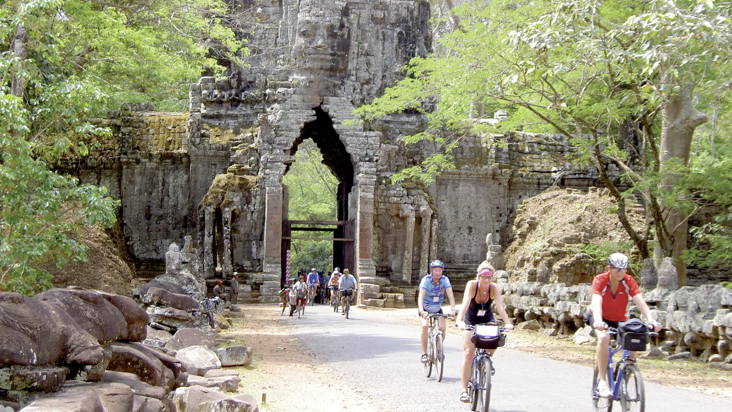 Unser heutiges Ziel ist Angkor Wat, das grösste religiöse Bauwerk mit der dichtesten Ansammlung von Tempeln auf der Welt. Früh fahren wir los zu diesem zu «Stein erstarrten Traum». Seit 1992 gehört Angkor Wat zum UNESCO-Weltkulturerbe. Inmitten eines üppigen Urwalds erwartet uns eine einzigartige und sehr eindrucksvolle Tempelarchitektur, die uns sowohl mit ihrer schier unglaublichen Grösse und Ausdehnung, aber auch mit ihren filigranen Steinmetz-Details tief beeindruckt. Mit dem Bike fahren wir zu den wichtigsten Anlagen und besuchen Angkor Thom, den Bayon und natürlich das alles überragende Angkor Wat. Der Srah Srang, das «Schwimmbad» des Königs und vor allem auch Ta Prohm, der mystische, im grünen Dschungel halb versunkene und mit riesigen Würgefeigen-Bäumen überwucherte Tempel sind weitere Highlights, die wir per Bike besichtigen.
