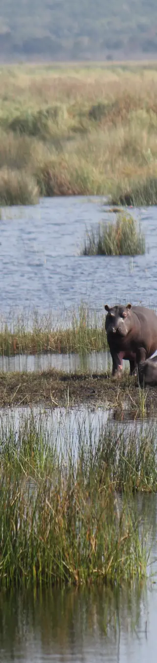 Bei einer Bootstour in den Wetlands entlang des St. Lucia Rivers kannst du „Hippos“, wie Flusspferde liebevoll genannt werden, aus der Nähe beobachten - wie die dickhäutigen Kolosse aus dem Wasser auftauchen oder sich am Ufer sonnen.