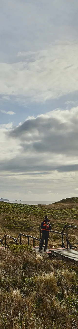 Der Nationalpark Kap Hoorn ist für seine schwer zugängliche Lage und sein launisches Wetter bekannt. Die wilde, felsige Landzunge erhebt sich an der Stelle aus dem Meer, an der Atlantik und Pazifik aufeinander treffen. An diesem sagenumwobenen «Ende der Welt» steht der fast senkrechte, 425 m hohe Fels Kap Hoorn. Die Anlandung ist nur an einem einzigen Ort in der geschützten Bucht möglich. Du erreichst das Land per Boot, bei hoffentlich ruhigem Seegang. Eine unvergessliche Erfahrung!