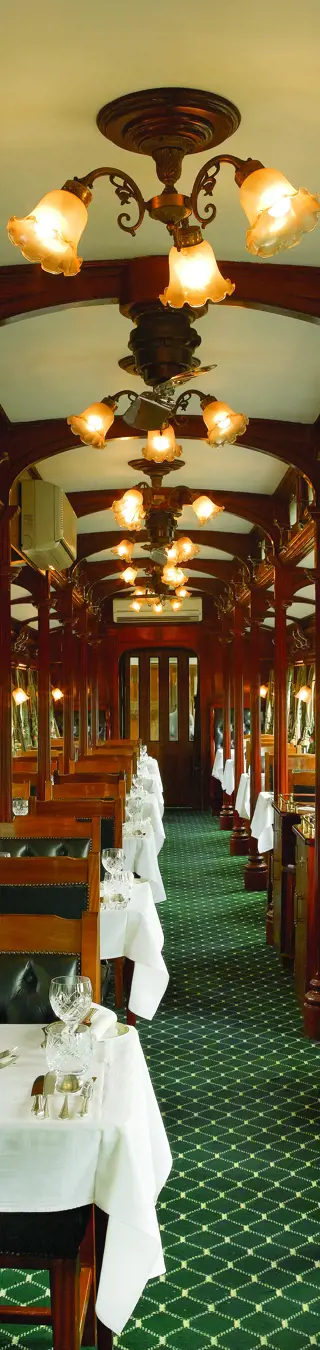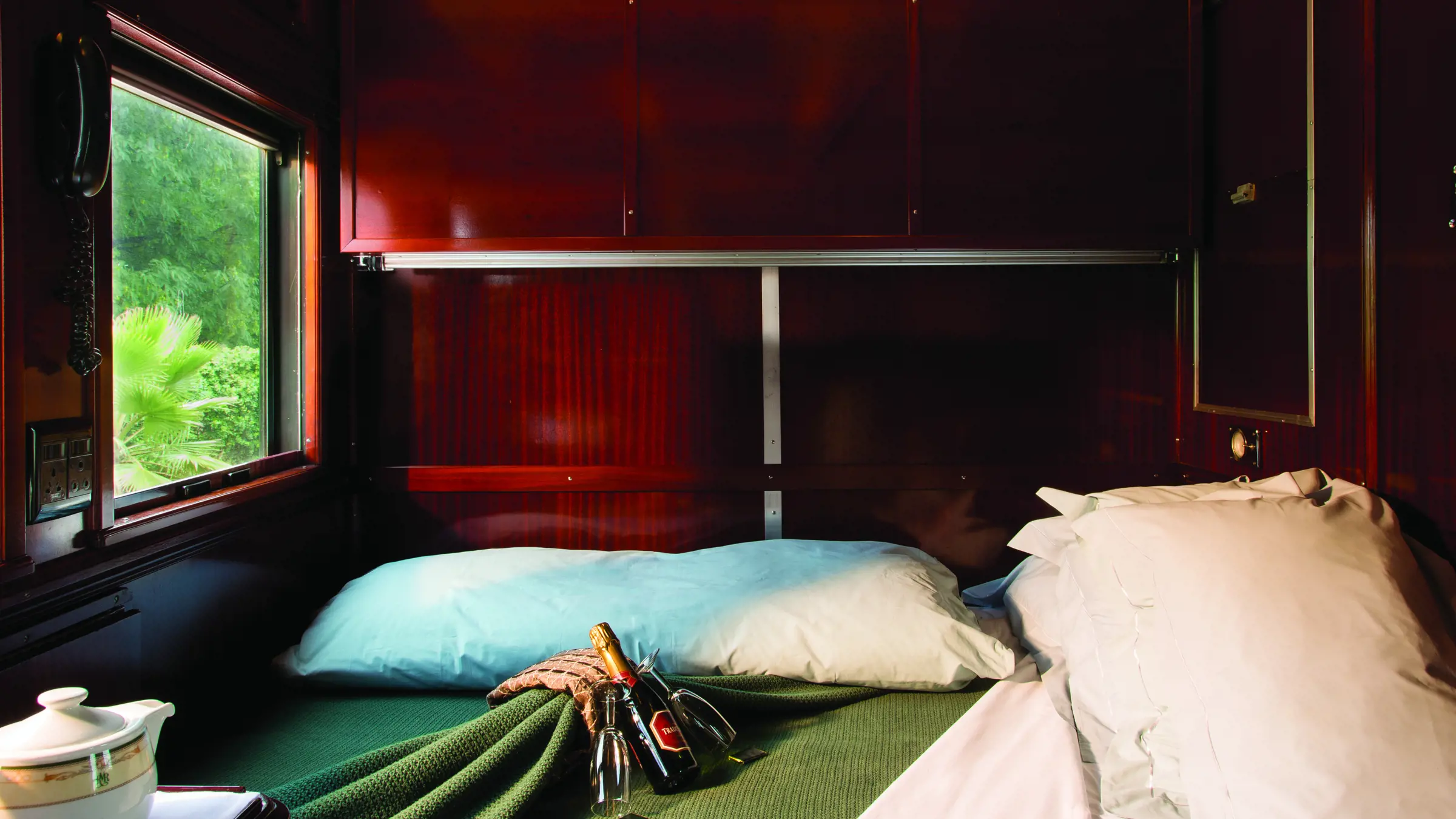 Jeder Zug verfügt über Speisewagen, einen Salonwagen, einen kleinen Souvenirladen, einen Raucherraum und einen Aussichtswagen mit offenem Balkon. Um den Geist einer vergangenen Ära zu bewahren, gibt es an Bord keine Radios oder Fernsehgeräte. Die drei verfügbaren Suiten - Pullman, Deluxe und Royal - bieten dir Privatsphäre und Komfort mit Doppel- oder Einzelbetten und einer Ausstattung auf höchstem Niveau. Alle verfügen über ein eigenes Bad mit Dusche, WC, Waschbecken und Badewanne (nur Royal), Teezubehör, Safes und Klimaanlage. Es gibt ausreichend Stauraum und kleine Schränke mit Kleiderbügeln und Regalen.