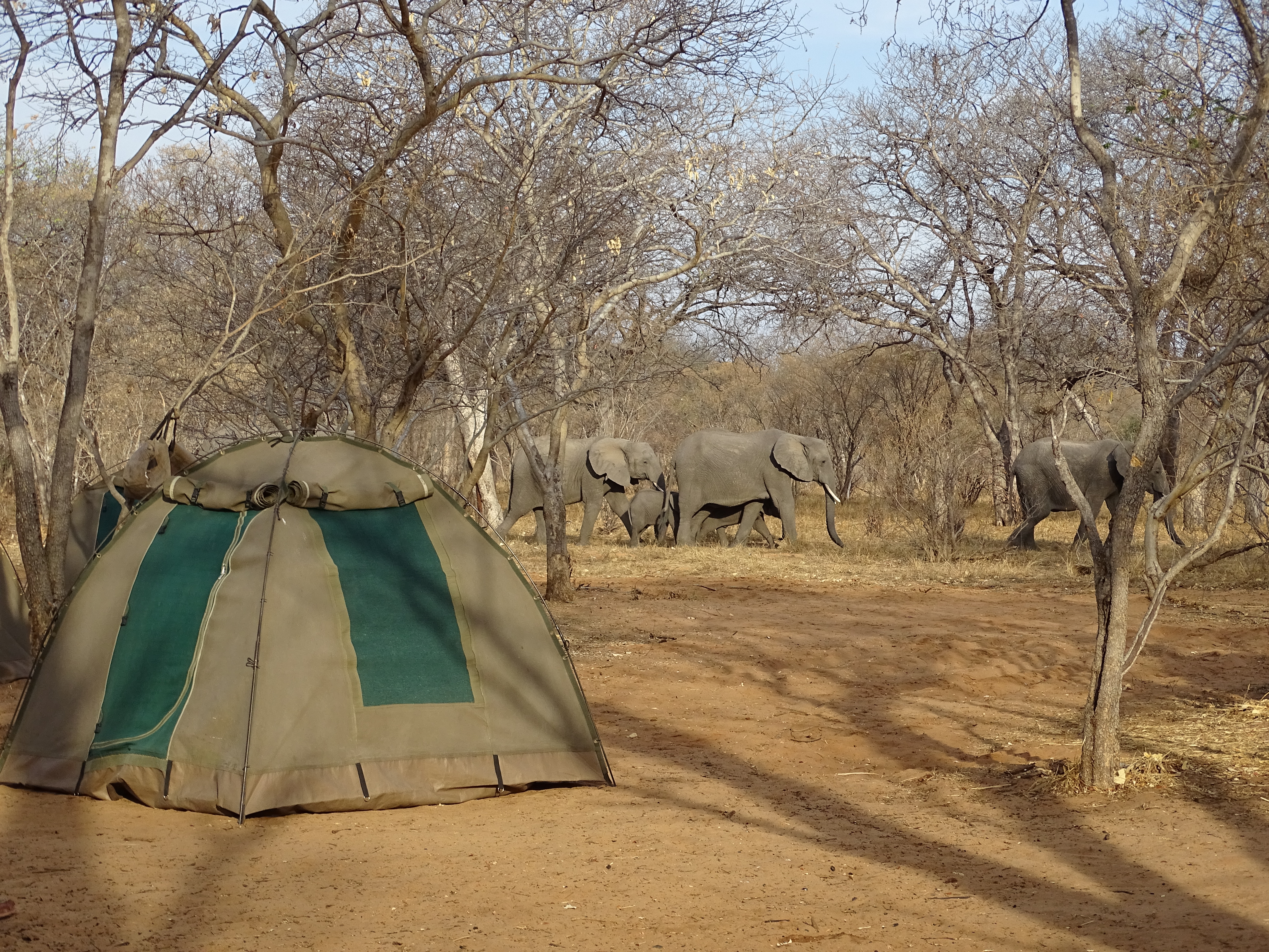 Obwohl die Elefanten die grössten an Land lebenden Tiere sind, haben sie die Fähigkeit, sich fast lautlos durch den Busch zu bewegen. Spätestens nach dieser Begegnung halte ich die Geschichte mit der Buschdusche für möglich.