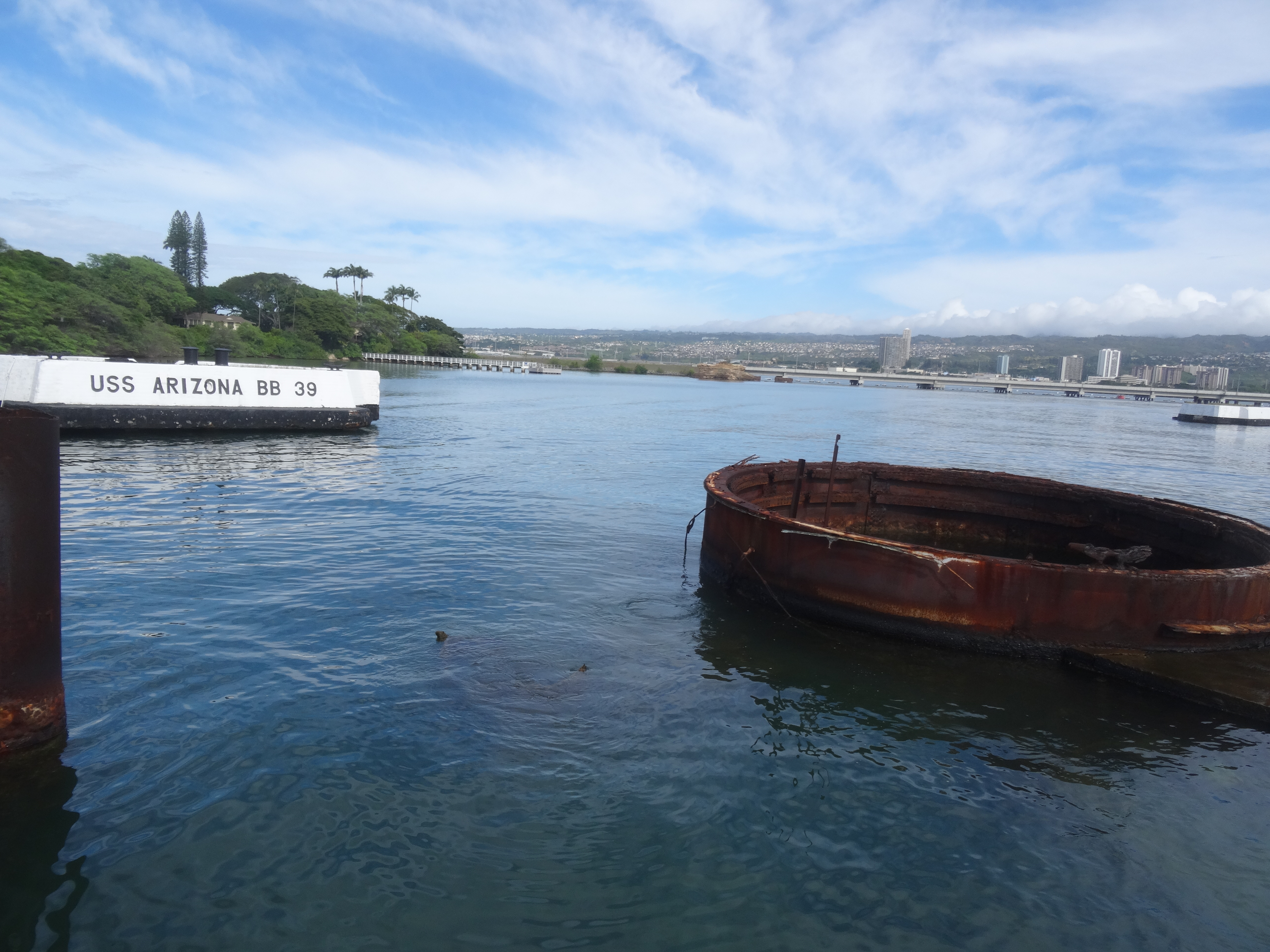 Am nächsten Tag besuchen wir Pearl Harbour im Südwesten Oahus. Hier bombardierten am 7. Dezember 1941 die Japaner in einem Überraschungsangriff die USA und zerstörten einen Grossteil der Pazifikflotte der US-Streitkräfte. Heute erinnert in Pearl Harbor ein Besucherzentrum mit Museum an die Geschehnisse. Ausserdem kann mit dem Boot die Gedenkstätte über der gesunkenen USS Arizona besucht werden.