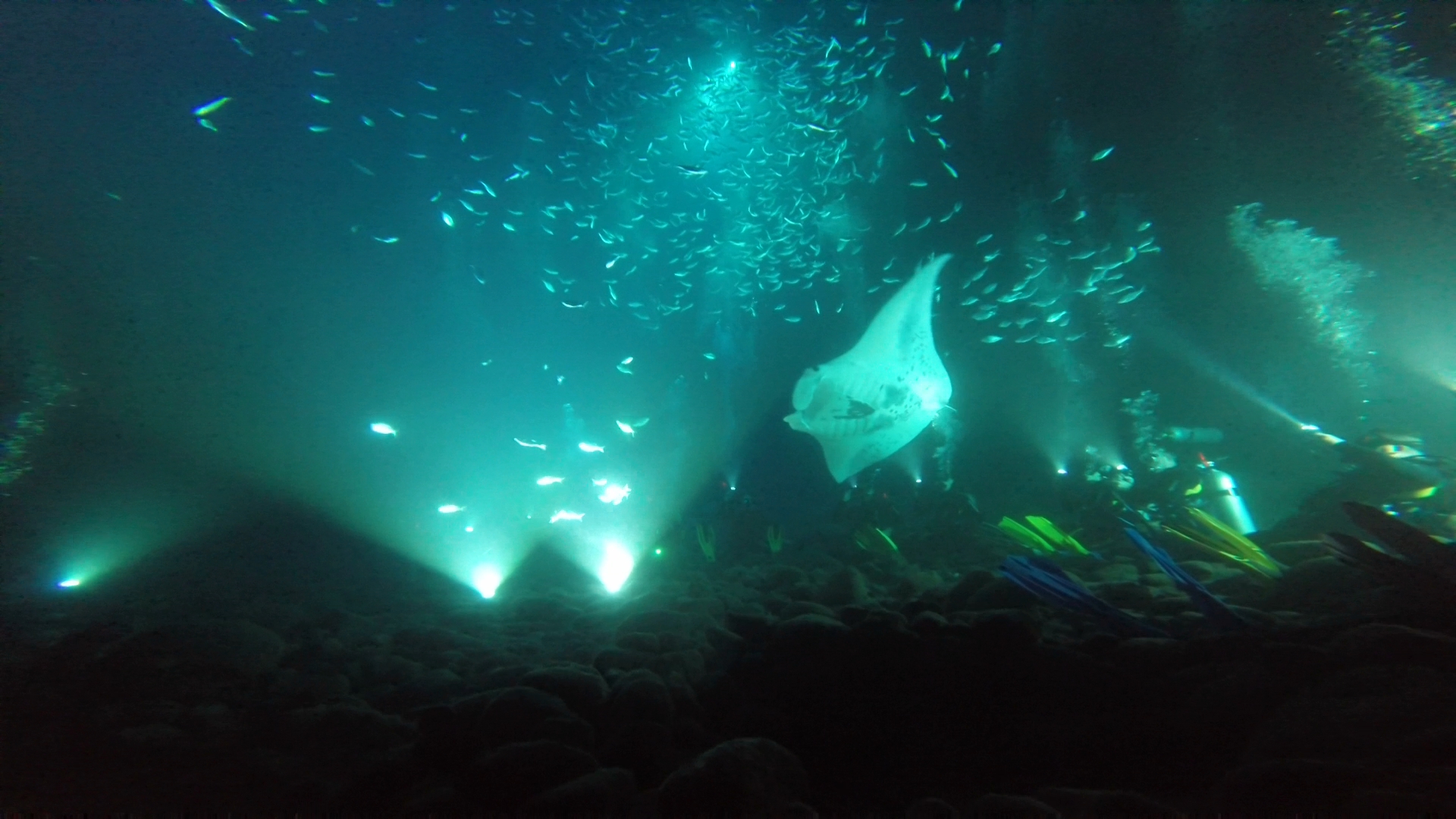 Tauche mit den Mantas durch die Dunkelheit