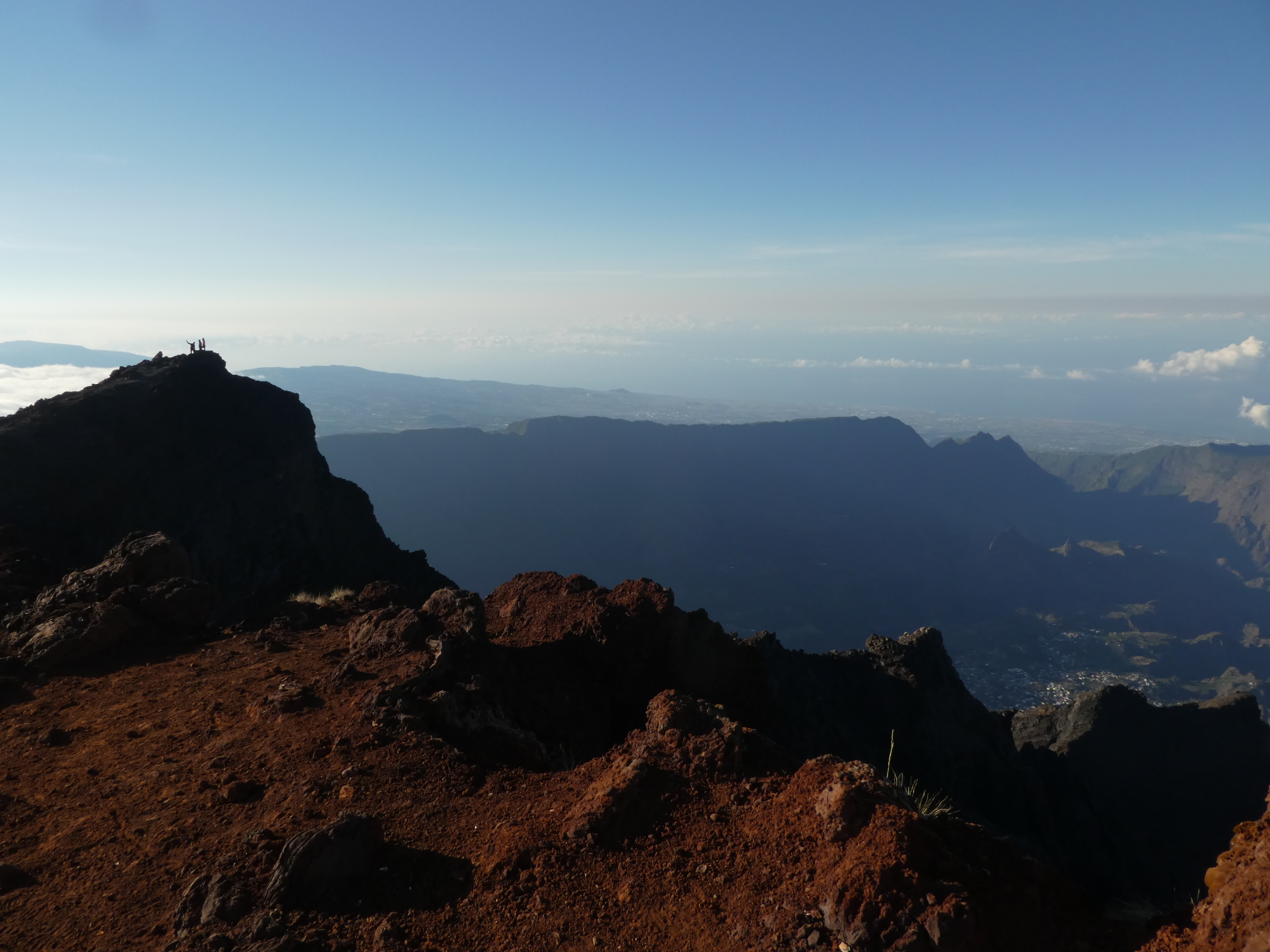 Ein weiterer Höhepunkt unserer Wanderung ist der Aufstieg zum Piton des Neiges auf einer Höhe von 3070 Metern; übrigens der höchste Berg von La Réunion. Um bei Sonnenaufgang am Gipfel zu sein, übernachten wir am Vorabend in der Berghütte Cavern Dufour auf 2478 m ü. M.. Auf dieser Höhe wird es nachts recht frisch und wir sind froh um unseren Schlafsack. Der Ausblick bei Sonnenaufgang ist spektakulär!