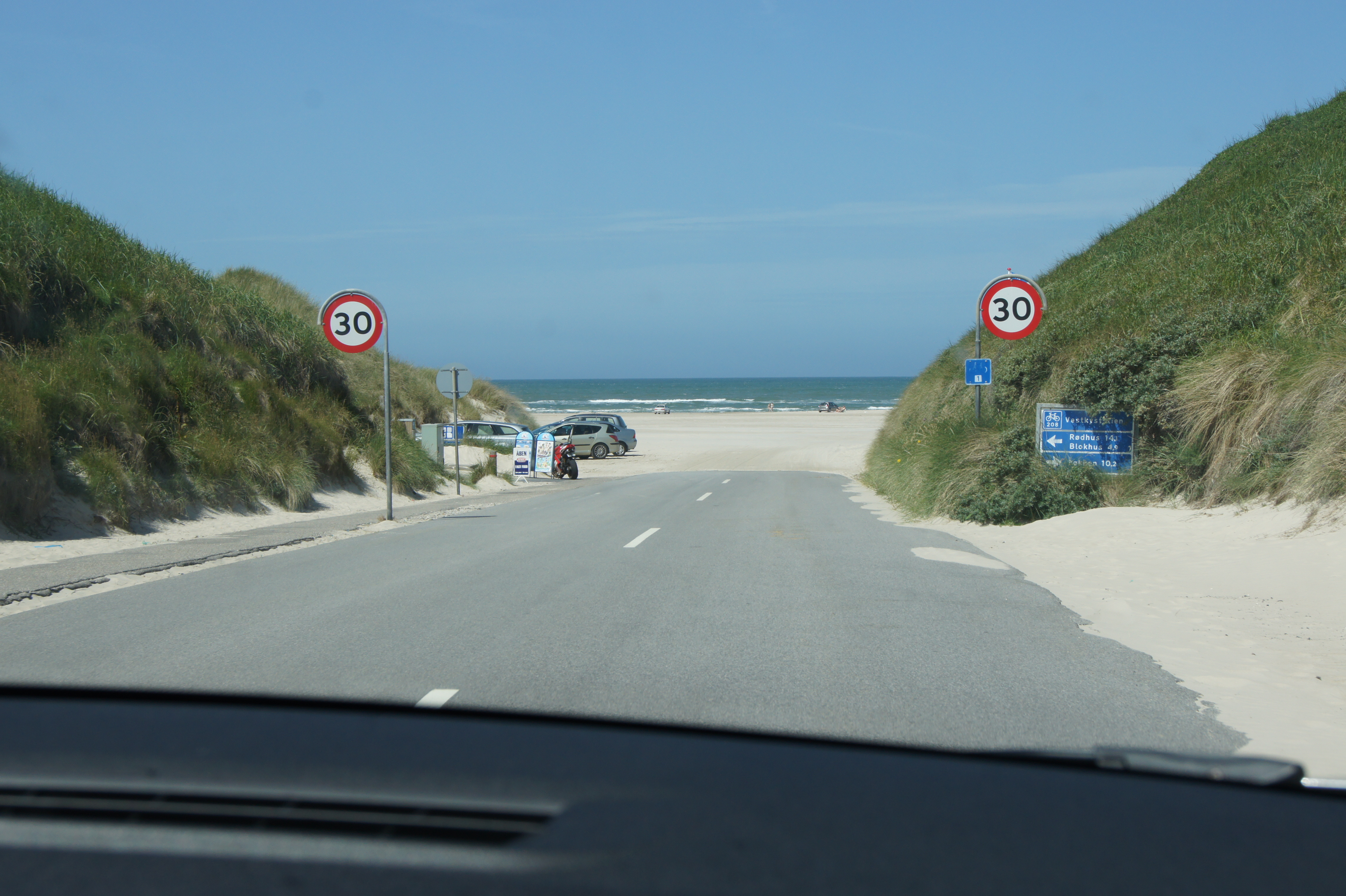Zwischen Blokhus und Lokken fürt die Strasse über den Strand. Wer etwas übermütig wird und die Piste verlässt, ist schnell mit den Rädern im Sand versunken. Dem Abschleppdienst wir hier nie langweilig, sehen wir doch unterwegs ein paar Fahrzeuge, die auf Hilfe warten.