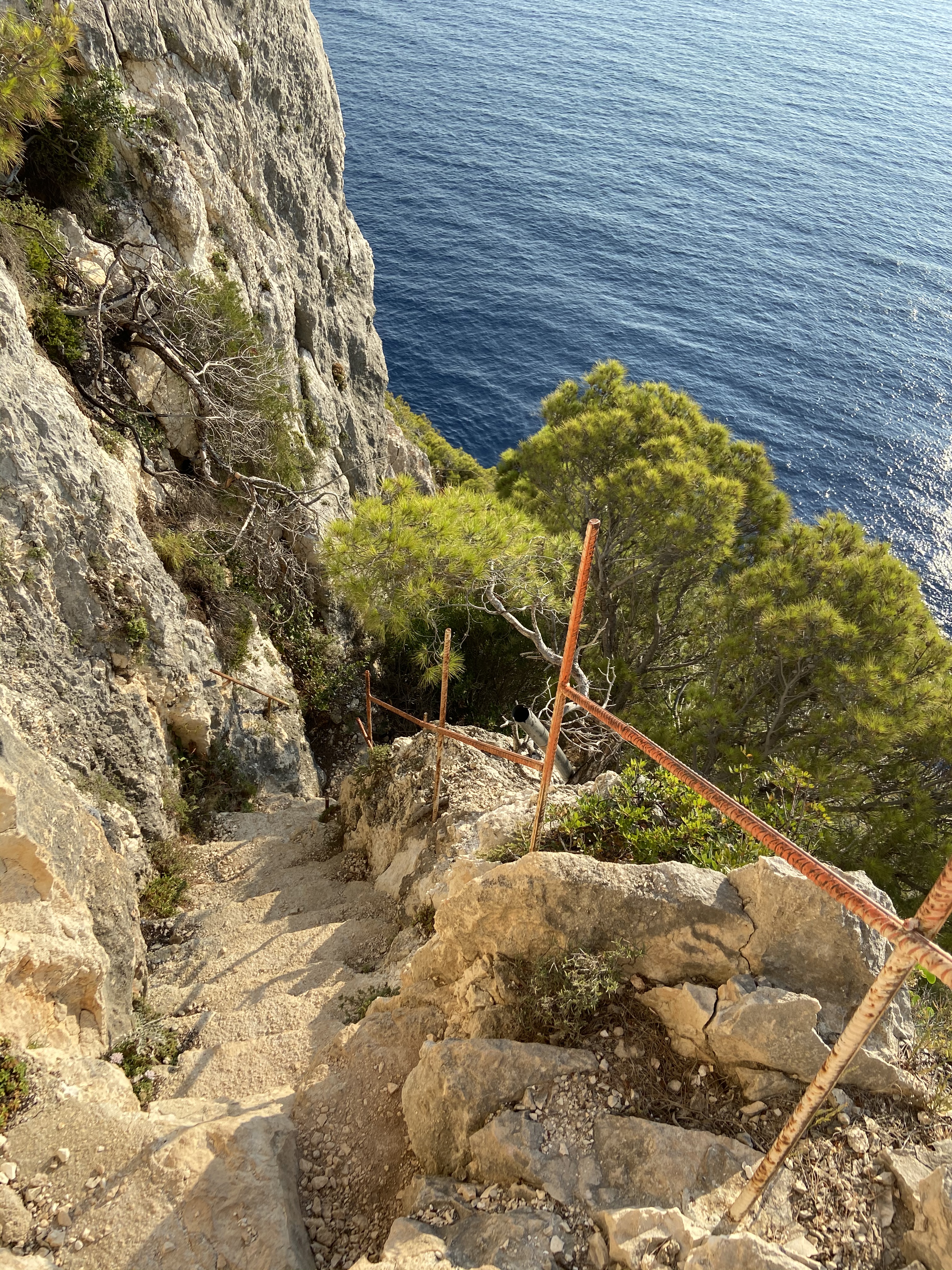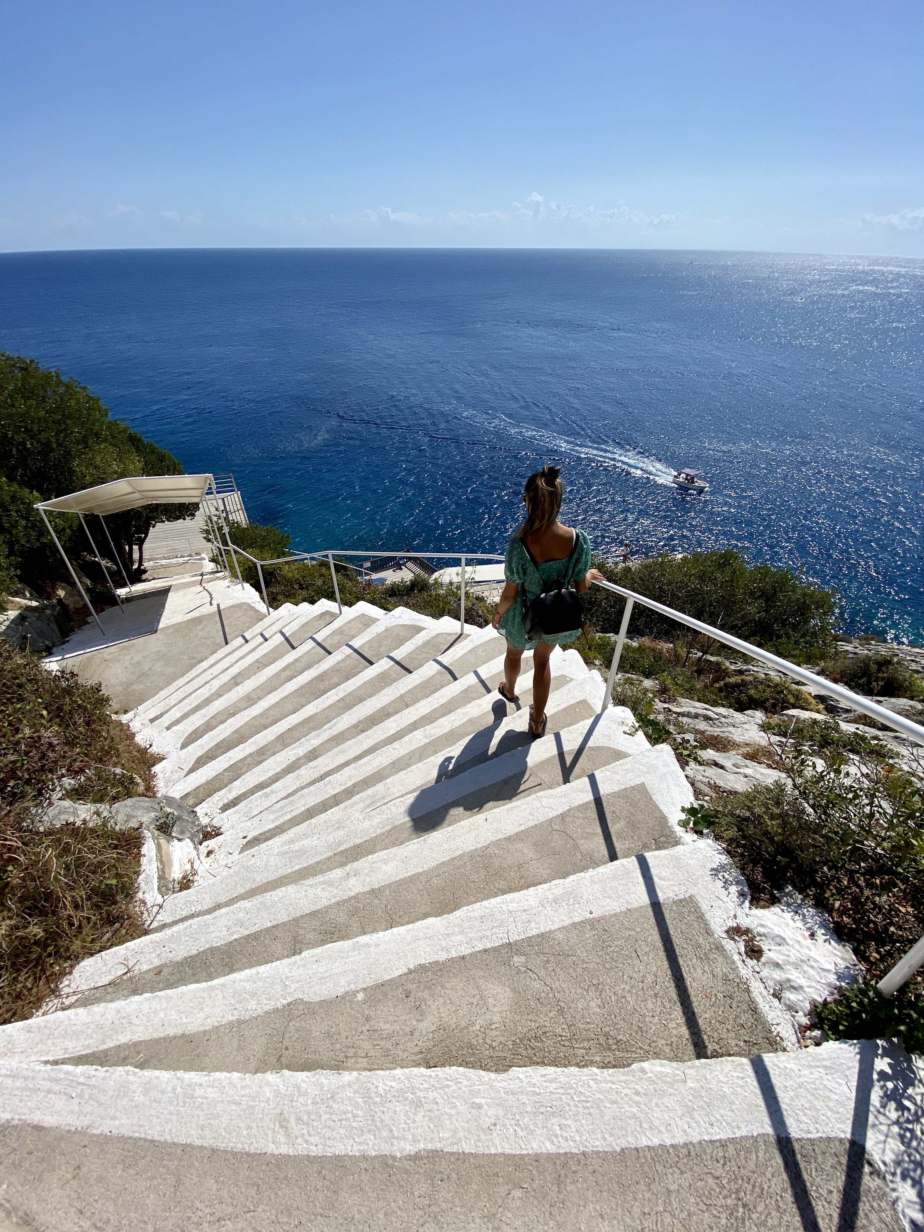 Vom Skinari Cape aus führt eine hübsche Treppe ans Meer hinunter. Ein kleiner Steg und ein Sprungbrett laden dort zum Verweilen und Baden ein.