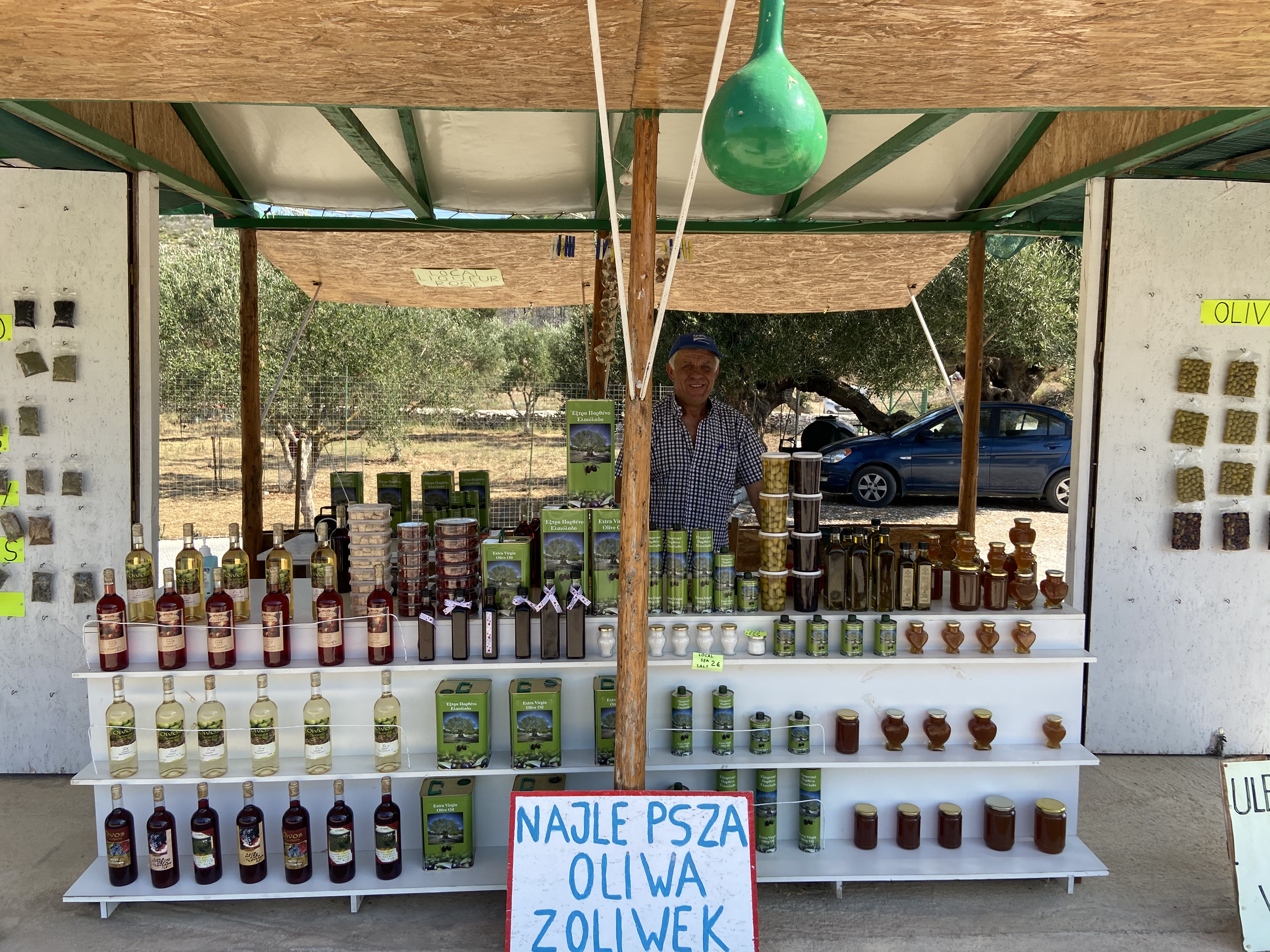 Wir sind übrigens per Auto unterwegs. Dies gibt uns die Möglichkeit, bei den einheimischen Bauern anzuhalten und typisch griechische Köstlichkeiten zu kaufen. Die meisten Griechen sprechen auch Englisch, somit machen wir tolle Bekanntschaften.