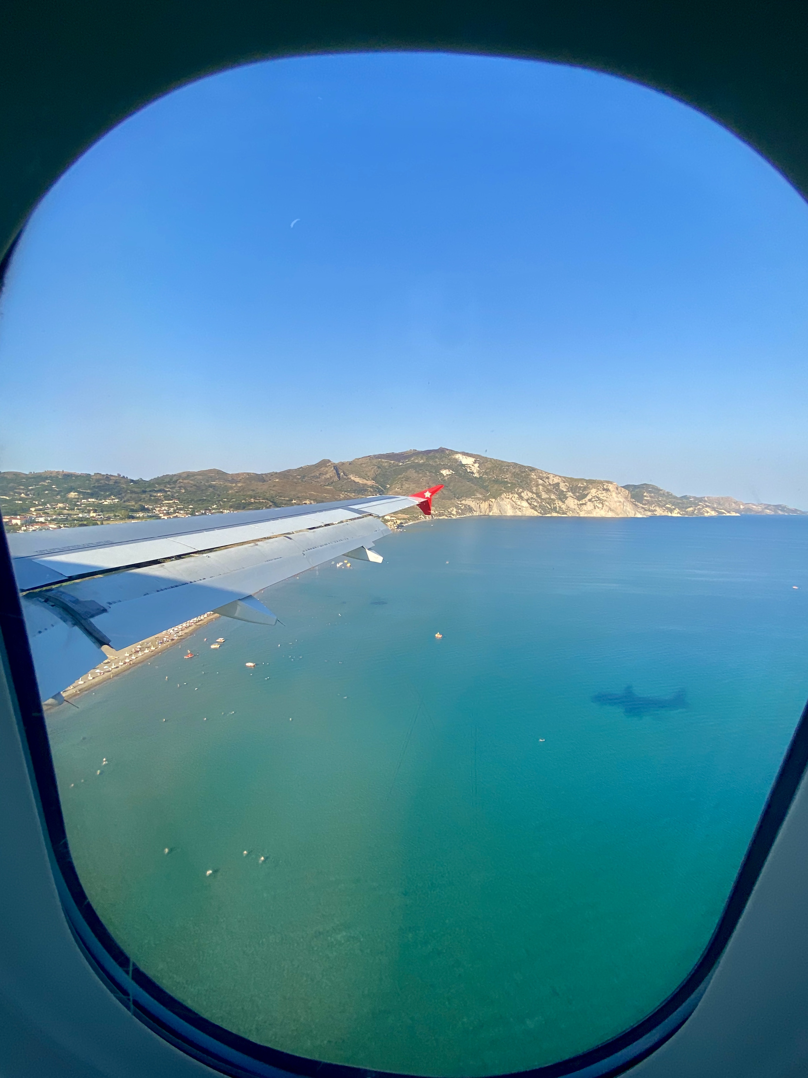 Mit dem Direktflug ab Zürich kommen wir nach gut zweieinhalb Stunden in Zakynthos an. Bei der Landung werden wir bereits von diesem schönen Anblick überrascht.