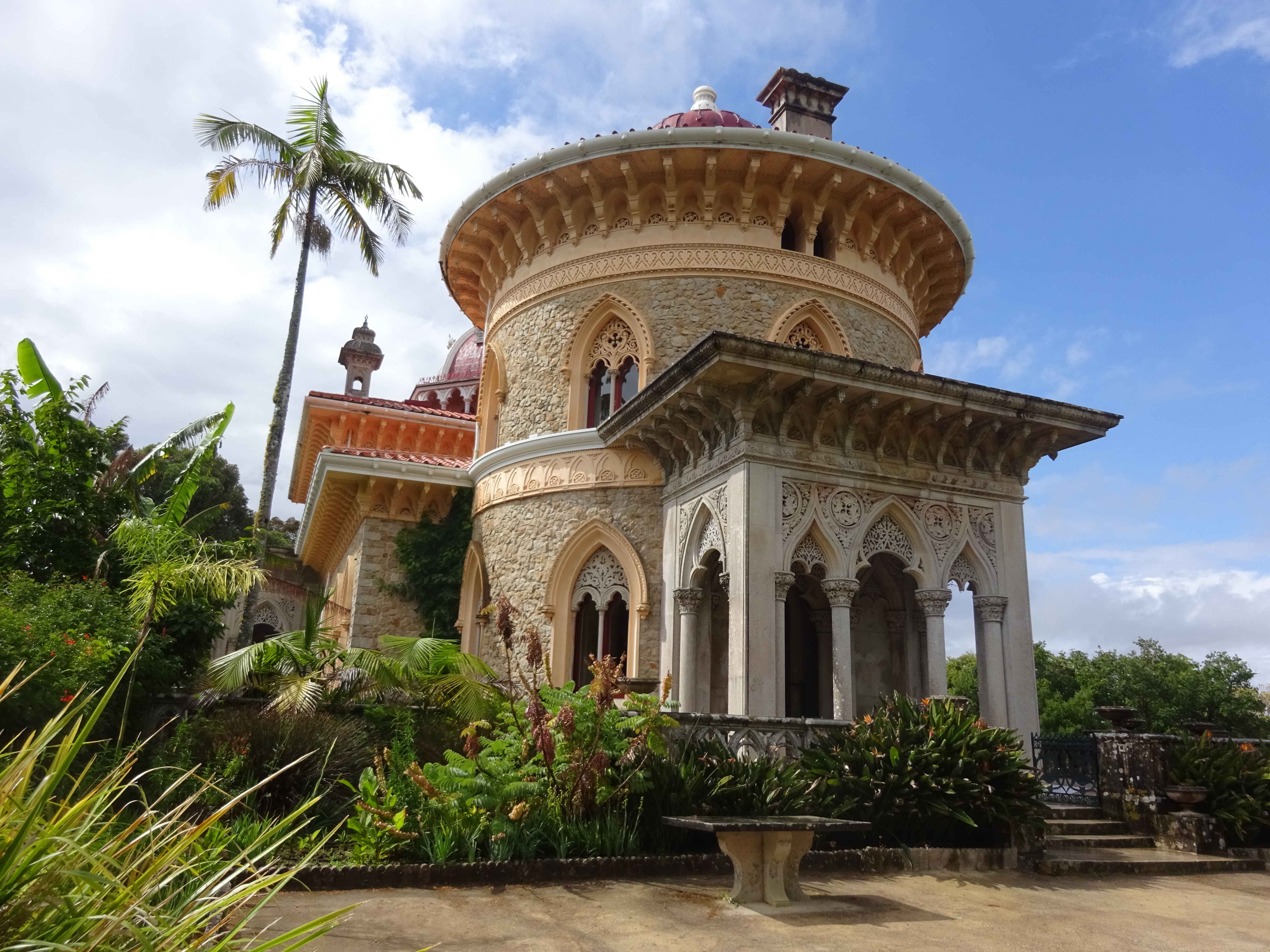 Im grosszügig angelegten Garten des Monserrate-Parks finden wir Erdbeerbäume, Mäusedorn und Korkeiche. Von Australien bis Mexiko finden sich hier zahlreiche Pflanzenarten aus aller Welt. Dazwischen steht ein weiteres majestätisches Bauwerk – der Palácio de Monserrate.