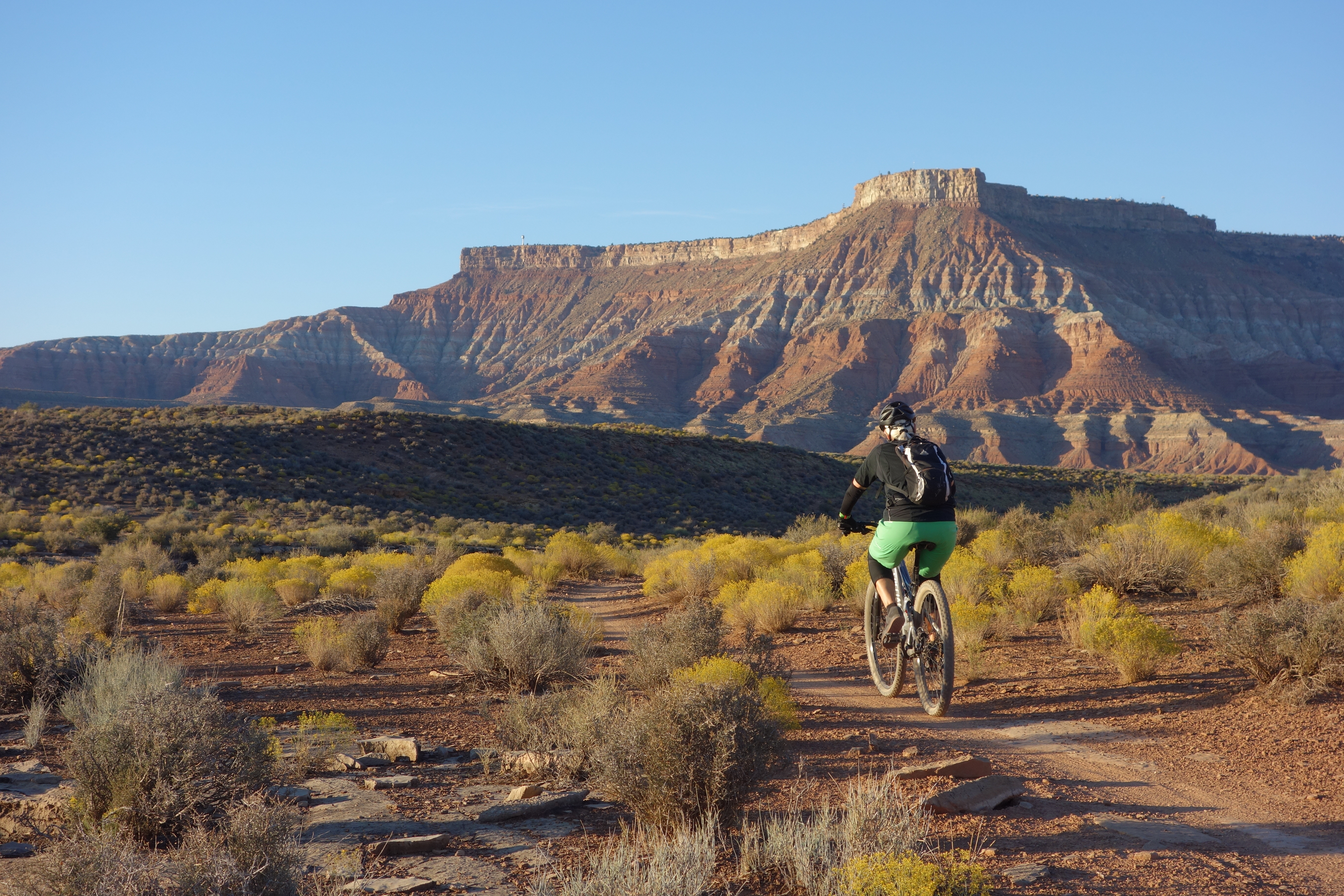 Es wird gemunkelt, dass Mountainbiken hier erfunden wurde. Wie dem auch sei, wir nutzen die exzellente Infrastruktur Moabs und lassen uns an die «Trailheads» fahren, um endlos lange Abfahrten durch diese unwirklich schöne Landschaft zu geniessen.