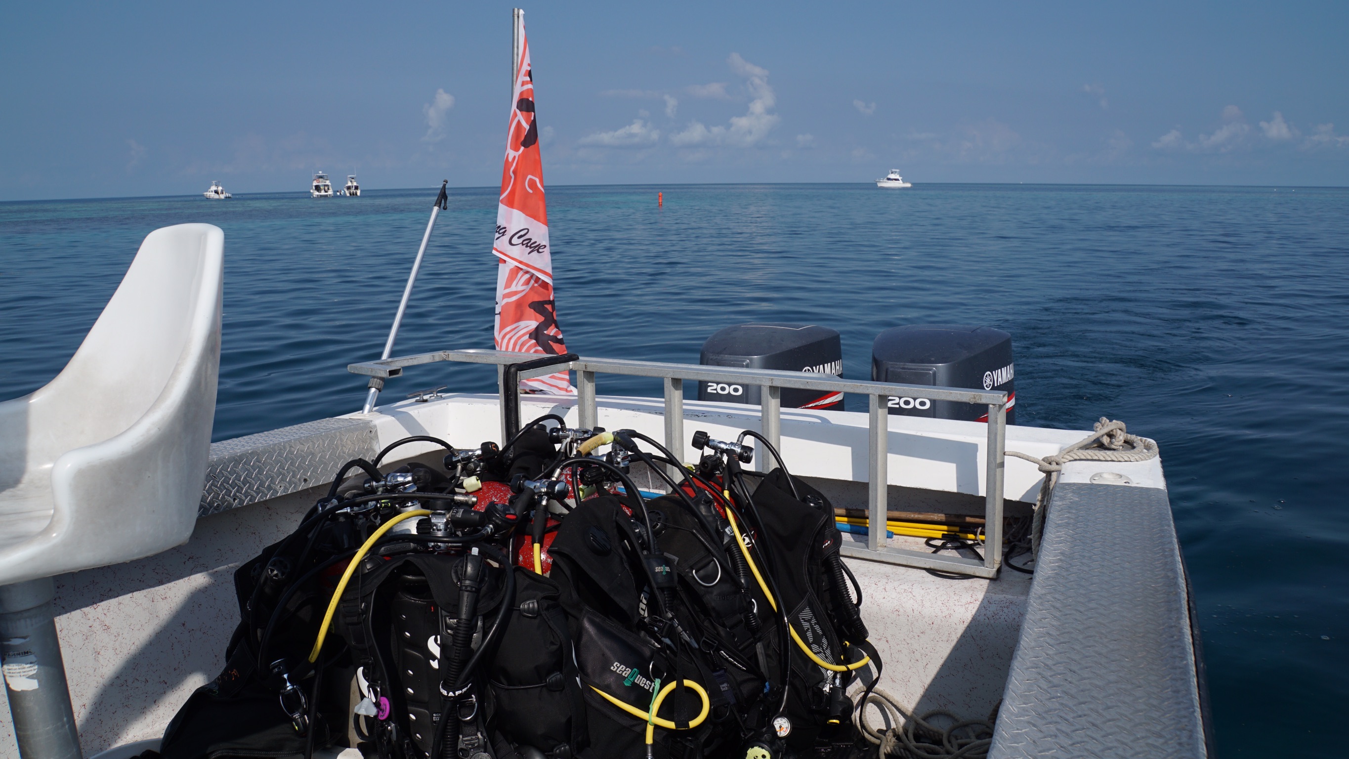 Das "Grosse Blaue Loch" ist DER Tauchspot schlechthin – gerühmt, berühmt und berüchtigt. Das Naturwunder liegt nur unweit unserer Insel. Auf Luftaufnahmen ist es als klar abzugrenzender blauer Kreis zu erkennen, aber aus unserer Perspektive nicht auszumachen. Der Ozean glänzt verheissungsvoll in der schräg stehenden Morgensonne, gespannt gleiten wir hinab in Untiefen. Es ist der einzige Tauchplatz, den wir nicht für uns alleine haben.
