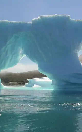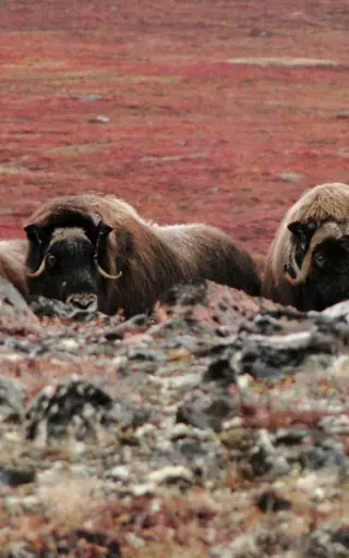 Hier befinden sich die wahrscheinlich schönsten Eisberge der Welt: das Blau-Weiß der Eisberge bildet einen scharfen Kontrast gegenüber den roten Sedimenthängen. Hier hast du die Chance, Moschusochsen und eine Tundra im Herbstlaub zu sehen.