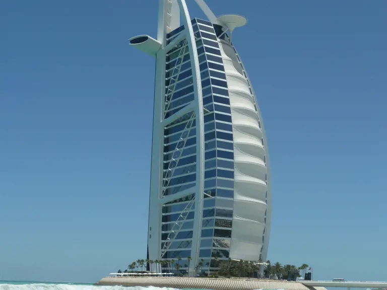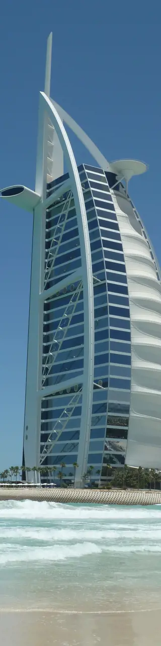 Dieses spektakuläres Suitenhotel, ist durch seine einmalige Architektur zu einem Wahrzeichen Dubais geworden. Auf einer kleinen Privatinsel etwa 280 Meter vor der Küste des bekannten Jumeirah Strandes gelegen, bietet es Luxus pur und gilt daher als eines der besten Hotels der Welt.