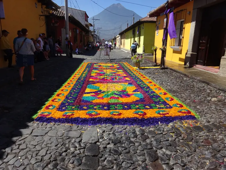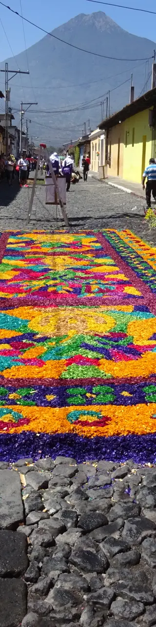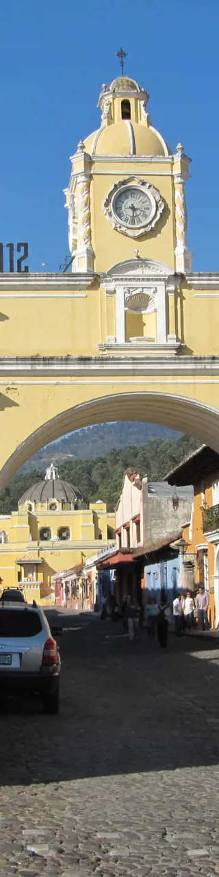 Landschaftlich herrlich im Panchoytal gelegen, umschlossen von den Vulkanen Agua, Acatenango und Fuego (welcher noch aktiv ist) bietet sie als UNESCO Weltkulturerbe seinen Besuchern Kopfsteingepflasterte Gassen, urige Gärten, historische Kirchen, beeindruckende spanische Kolonialbauten, bunte Märkte und einen hohen Grad an Entspanntheit! Antigua Guatemala ist der feuchte Backpackertraum im Herzen von Mittelamerika!