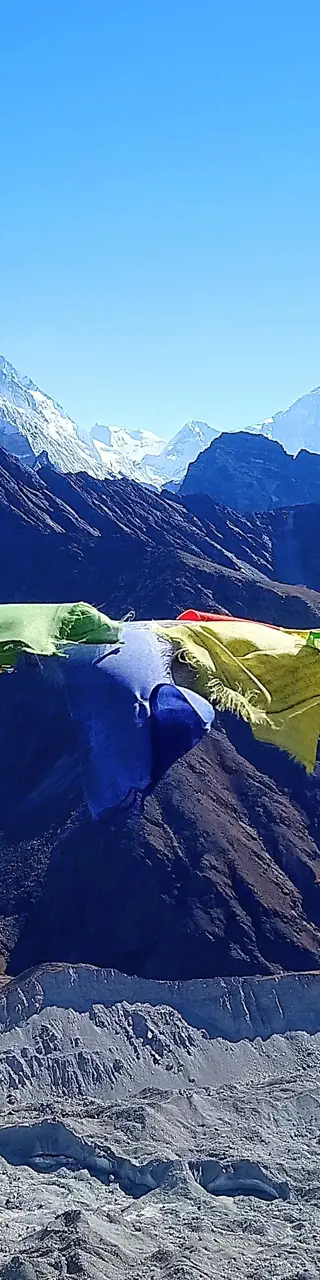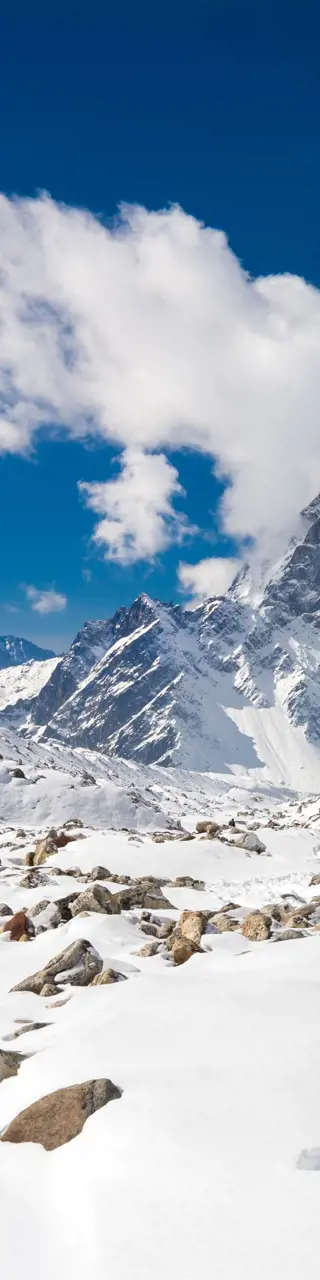 Auf fast 5000 Höhenmeter am Ende des Langtang-Tals wehen farbige Gebetsfahnen im Wind. Ihre aufgedruckten Gebete werden zu den Göttern auf den majestätischen Himalaya-Gipfeln getragen. Hier kannst auch du deine eigenen Gebetsfahnen aufhängen und dich über deinen Gipfelerfolg des Cherko Ri freuen oder einfach die atemberaubende Aussicht auf dich wirken lassen.