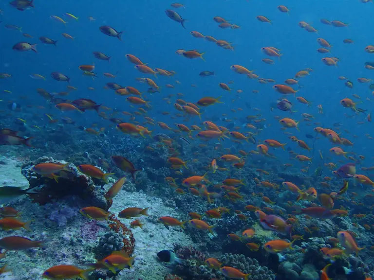 Auf den Malediven tauchst du auf sogenannten «Thilas». Das Wort Thila ist in die einheimischen Bezeichnung für einen kleinen Unterwasserberg, der die Wasseroberfläche nicht ganz erreicht. Diese Riffe im Inneren der Atolle sind oft von Korallen bedeckt und bilden den Lebensraum für unzählige Fischarten.