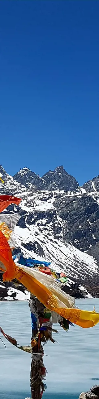 Auf fast 5000 Höhenmeter am Ende des Langtang-Tals wehen farbige Gebetsfahnen im Wind. Ihre aufgedruckten Gebete werden zu den Göttern auf den majestätischen Himalaya-Gipfeln getragen. Hier kannst auch du deine eigenen Gebetsfahnen aufhängen und dich über deinen Gipfelerfolg des Cherko Ri freuen oder einfach die atemberaubende Aussicht auf dich wirken lassen.
