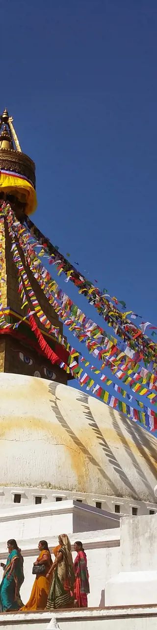 Zahlreiche Tempel, Stupas und Paläste erwarten dich. Die beeindruckende weisse Stupa von Bodnath ist eine der wichtigsten buddhistischen Pilgerstätten. Am Durbar Square wurde einst der König gekrönt und noch heute wohnt in einem kleinen holzgeschnitzten Haus die Inkarnation einer Göttin des Hinduismus.
