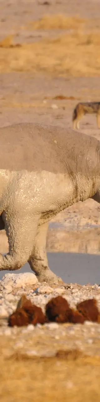 Etosha umfasst eine Fläche von über 22000 km2 und ist seit 1907 Wildschutzgebiet. Im Zentrum liegt eine ausgedehnte Salzpfanne. Vor rund 2 Mio. Jahren gab es hier einen riesigen See, der durch den Kunene Fluss gespeist wurde und später durch Änderung des Flussverlaufs allmählich austrocknete. Die Pfanne ist nahezu immer trocken. Besonders im südlichen Teil des Parks liegen jedoch verstreut zahlreiche Wasserlöcher, Lebensgrundlage für den Wildbestand. Fast die gesamte Palette an afrikanischem Grosswild ist im Park vertreten, inkl. Big Five.