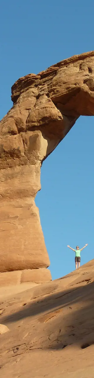 Der Arches Nationalpark ist mit spektakulär erodierten Sandsteinformationen durchzogen und enthält die weltweit grösste Konzentration an Natursteinbögen. Wir empfehlen dir, abends eine Wanderung bei Sonnenuntergang zu machen, um berühmte Sehenswürdigkeiten wie das «Delicate Arch» zu besichtigen.