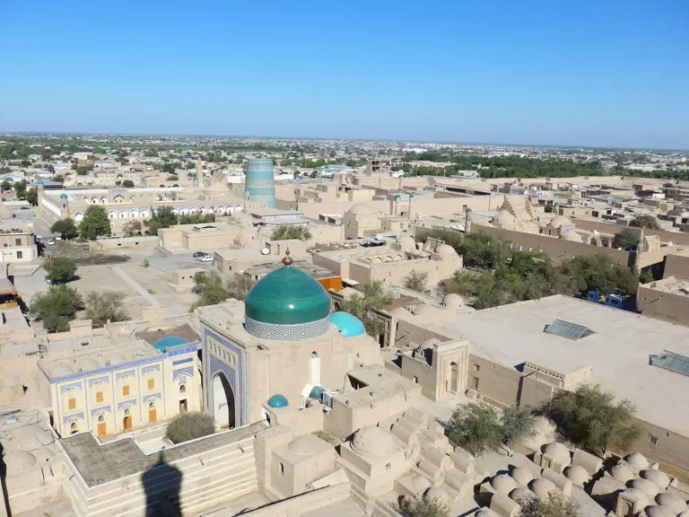 Eine weitere Sehenswürdigkeit, die auf deiner Usbekistan Rundreise auf keinen Fall fehlen sollte, ist die Oasenstadt Chiwa. Bereits seit 1967 ist die historische Stätte Teil des UNESCO-Weltkulturerbes. Und das nicht zu Unrecht! Entdecke den Palast Tasch Hauli und die Festung Konya Ark – zwei wahre Meisterwerke der Baukunst.
