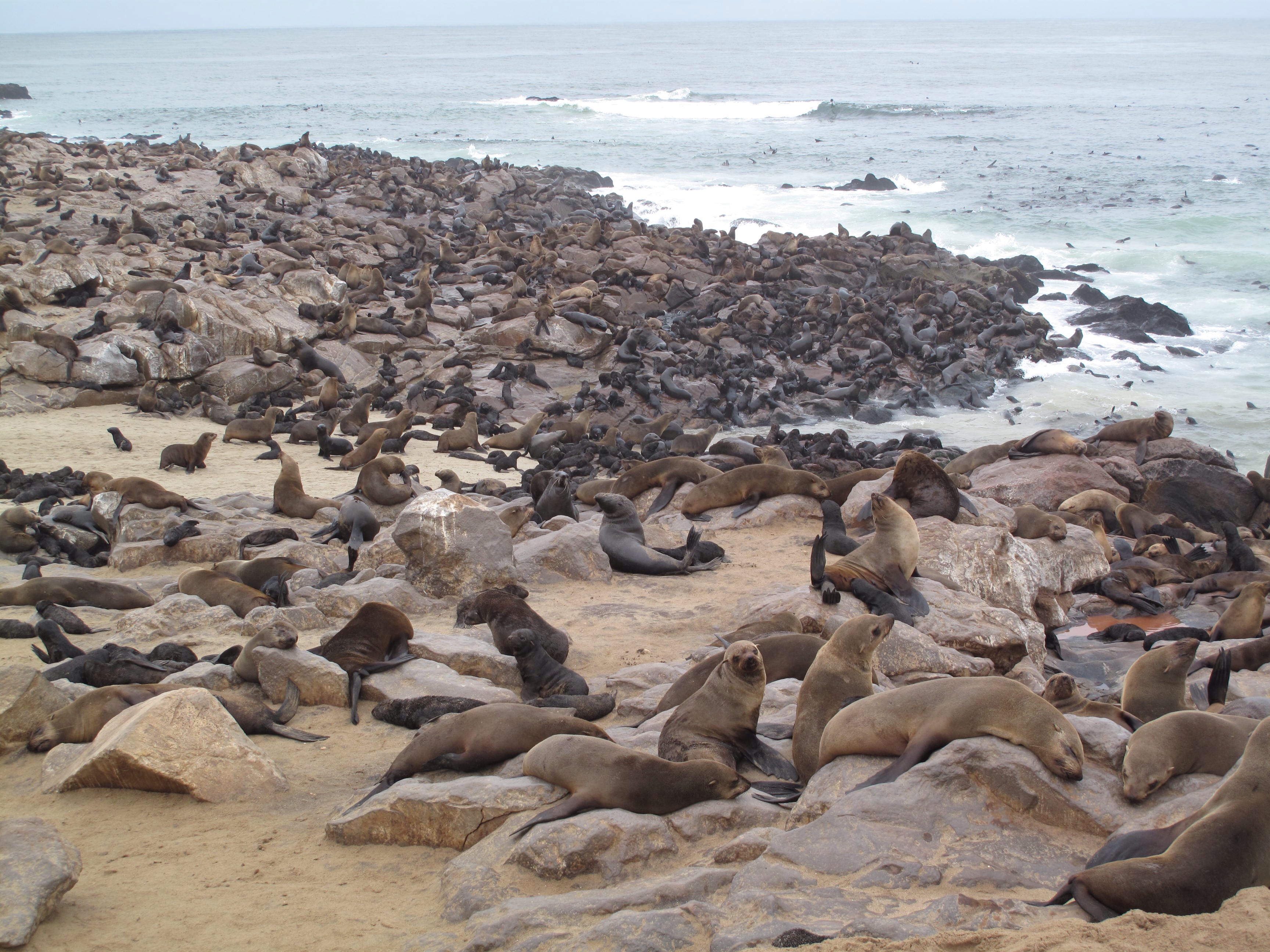 Ein paar Kilometer nördlich von Swakopmund an der Skeleton Coast liegt Cape Cross wo tausende Robben leben.