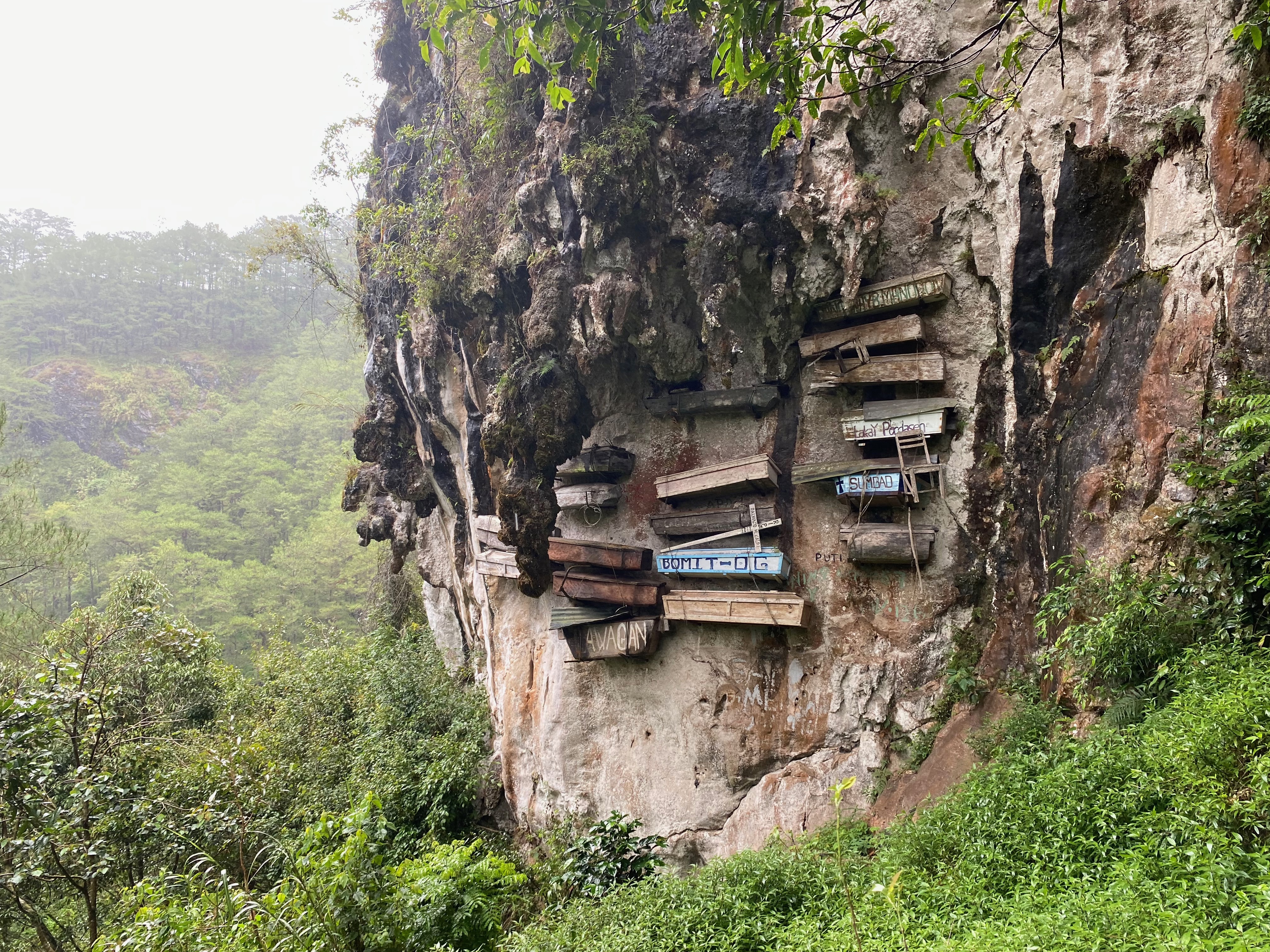 Située à environ 12 heures de bus (ou 6 heures en voiture) au nord de Manille, dans les montagnes de l’île de Luzon, Sagada est un lieu hors du temps empreint de légendes mythiques et mystiques. Célèbre pour ses rites funéraires suspendus, aujourd’hui de plus en plus rares, cette région continue de fasciner par son histoire et sa spiritualité. La région montagneuse est charmante et permet de découvrir une autre facette des Philippines.
