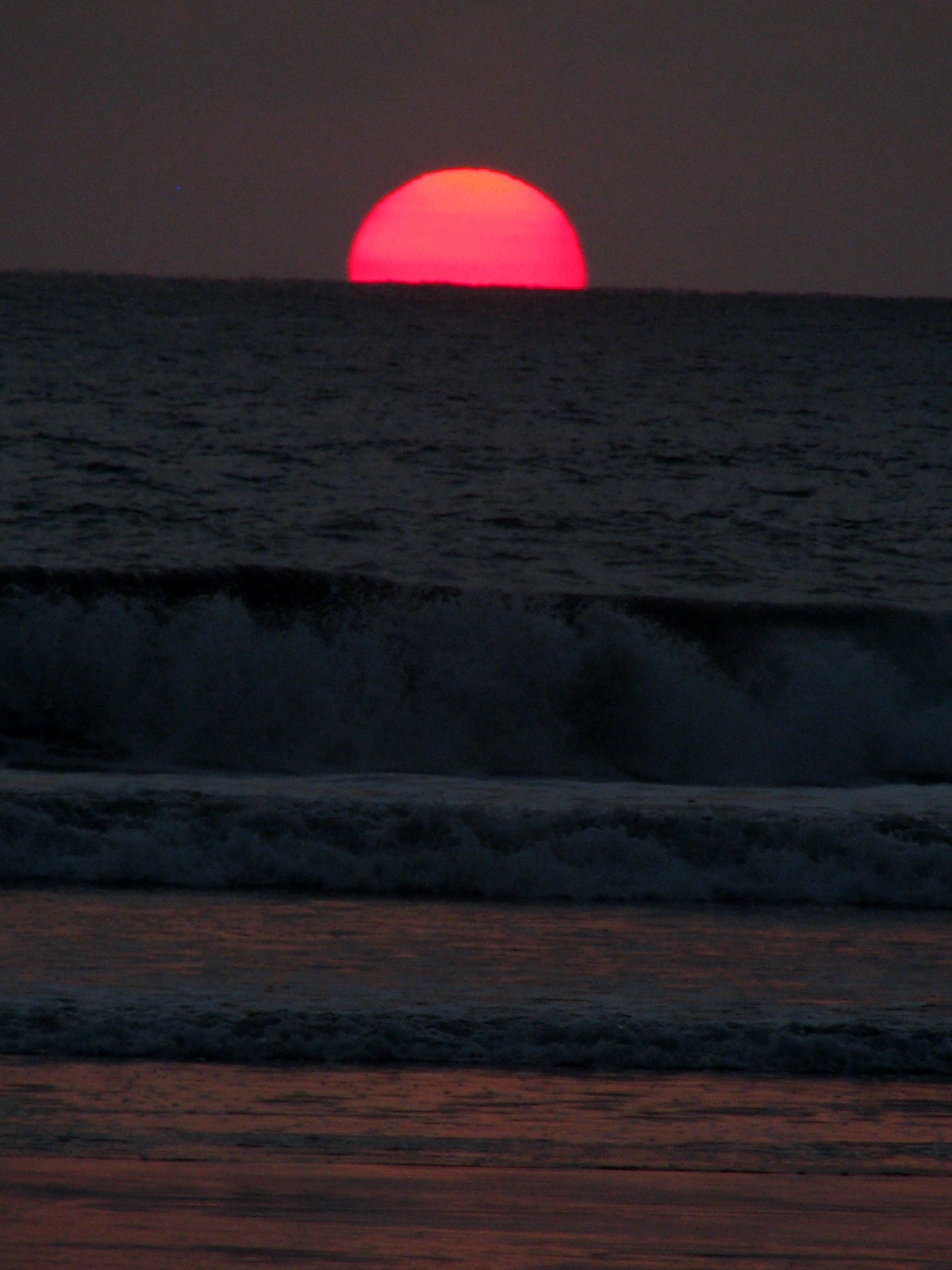 De notre lodge, nous admirons un magnifique coucher de soleil sur le Pacifique, après avoir été accueillis et choyés par le couple de propriétaires. -