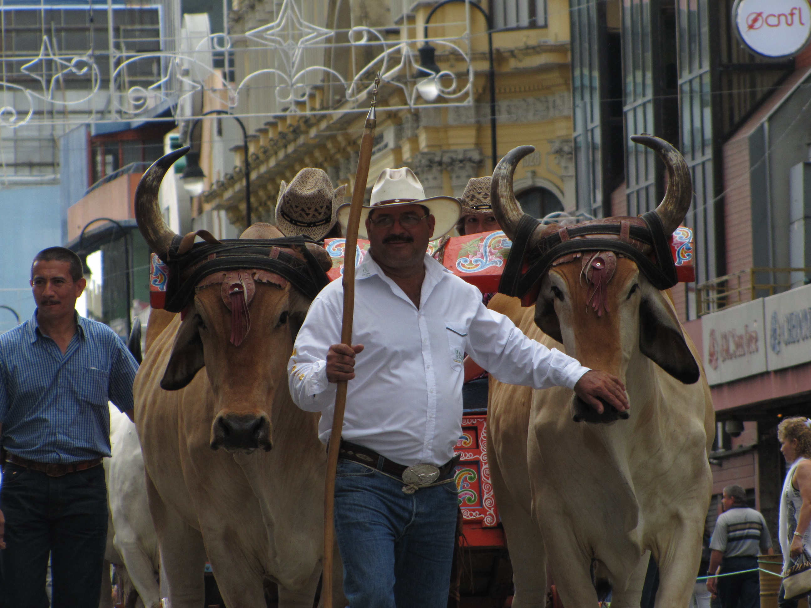 Pendant les jours fériés, les traditionnels «Boyeros», les gardiens de bétail, avec leurs magnifiques chariots de bois diapré tirés par des vaches décorées, sont omniprésents. Les «Campesinos» au regard fier sont, eux aussi, fidèles au rendez-vous. Lors de ces parades, un prêtre bénit d’abord tous les participants. Le plus beau chariot de bœufs est ensuite primé dans le cadre d’un concours.