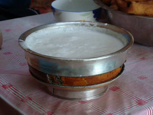 L’aïrag est une boisson à base de lait fermenté de jument, qui contient un peu de gaz carbonique et jusqu’à 2% d’alcool. Son goût est légèrement acide mais très agréable après un petit temps d’adaptation. -