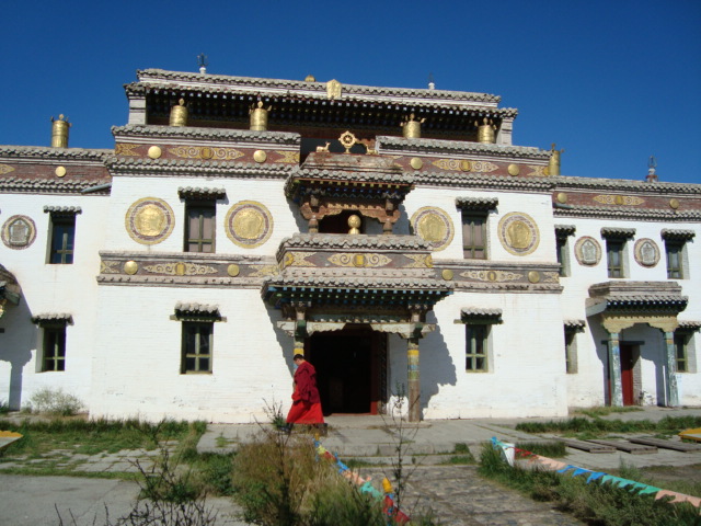 Fondé en 1586, Erdene Zuu est le plus ancien des monastères bouddhistes de Mongolie. Il abritait autrefois plus d’un millier de moines, mais a dû cesser son activité entre 1941 et 1990 pour n’être plus qu’un musée, ce qui lui a permis de survivre dans la Mongolie soviétique. Le monastère n’a pu rouvrir qu’après le changement de régime politique en 1990. -
