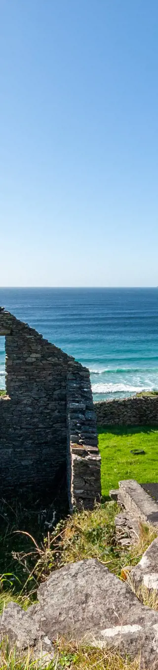 Three Castle Head liegt im Südwesten von Irland. Hier erwartet dich die mystische Vergangenheit des Landes mit Steinkreisen, Druidengräbern, Burgruinen und einer Vielzahl von Mythen und Geistergeschichten. Der Three Castle Head bezeichnet die Ruinen des Dunlough Castle. Das Schloss verdankt den Namen seinen drei Türmen. Über den Wanderweg von Mizen Head aus gelangst du zu dem mystischen Ort. Die Wanderung allein lohnt sich, denn es erwartet dich ein wunderschöner See und faszinierende Steilklippen.