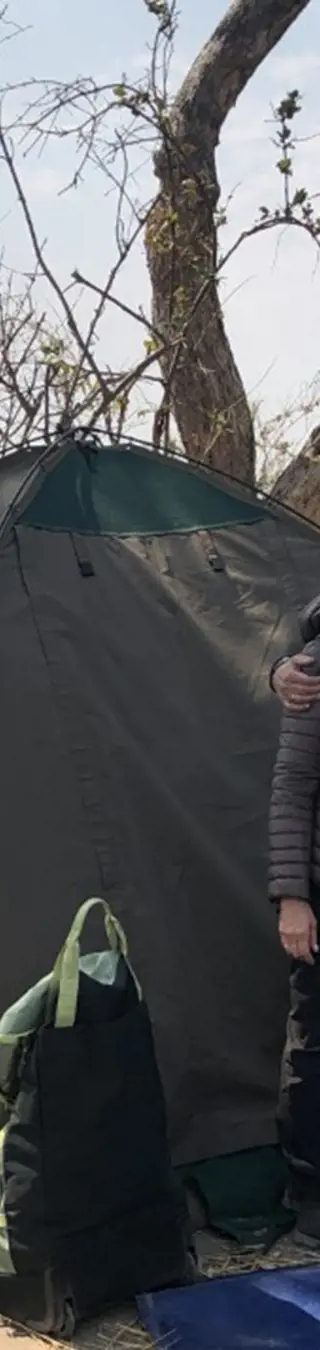 Unser Zeltlager haben fleissige Wichtel bereits vorbereitet: Im Kreis aufgestellt, bilden die Zelte ein eigenes kleines Dorf, die Feuerstelle in der Mitte dient als Kochstelle, Heizung und Busch-TV. Auch Toilette und Dusche sind bereits gegraben und installiert. Waynes Tipp: Immer den Fotoapparat auf die Toilette mitnehmen! Recht hat er: Nicht selten kommen Elefanten vorbei, die neugierig über unsere Zelte lugen.