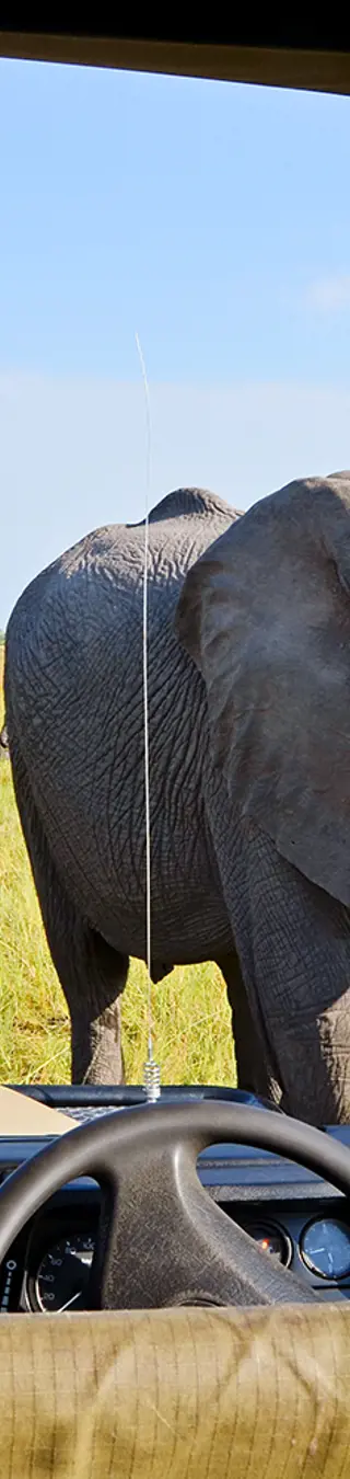 Jetzt sind die Tiere wieder aktiv, du fährst los: Besonders in privaten Reservaten, wo auf der Pirschfahrt Hauptpisten verlassen werden dürfen, bist du den Tieren unglaublich nahe: ein paar Meter nur von Elefanten und Löwen entfernt – keine Seltenheit! Danach gibts zum Sonnenuntergang den «Sundowner» – mitten im Busch.