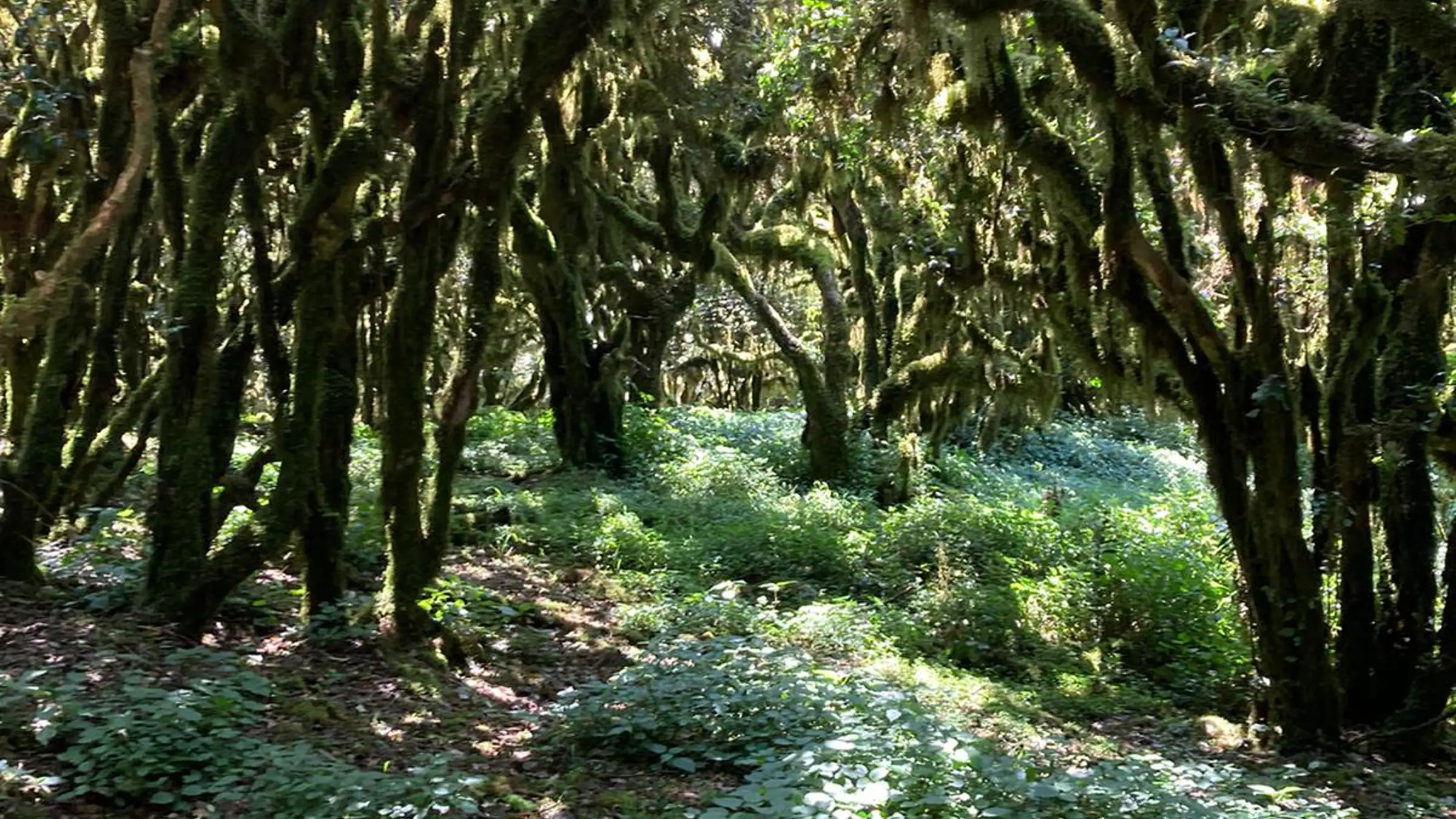 Der Longido Mountain erstreckt sich über verschiedene Höhenlagen und Klimazonen. Die Veränderung der Vegetation während des Aufstiegs ist auf die Variationen in der Höhe, den Niederschlagsmustern und den Umweltbedingungen zurückzuführen. Nach der kargen Landschaft wird es plötzlich richtig grün. Es kommt so unerwartet – es fühlt sich an wie im Märchenwald.